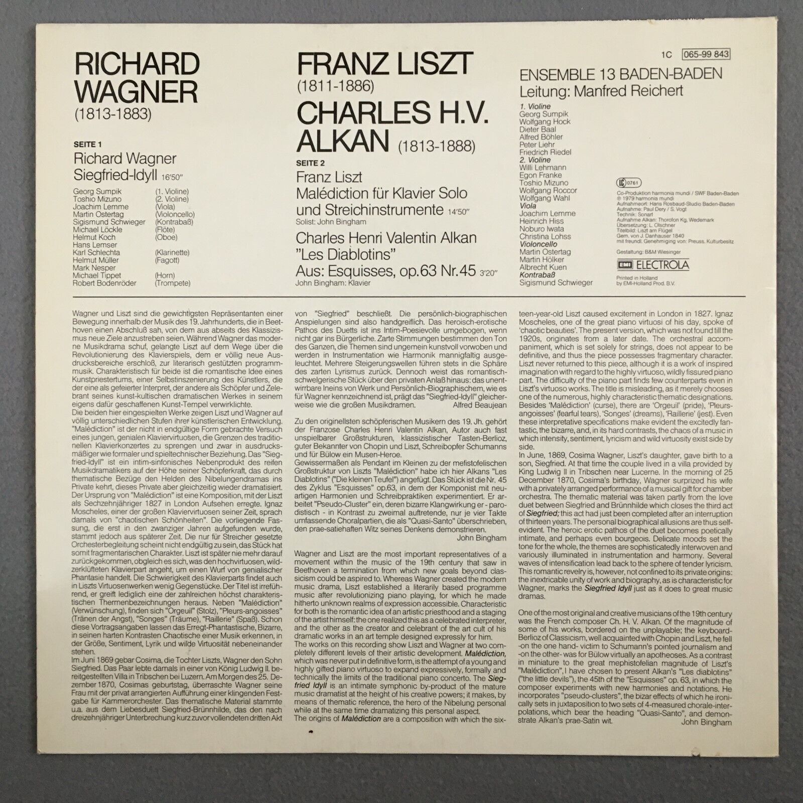Z951 Wagner Siegfried Idyll Liszt Malediction Reichert HM 1C 065-99 843 Stereo