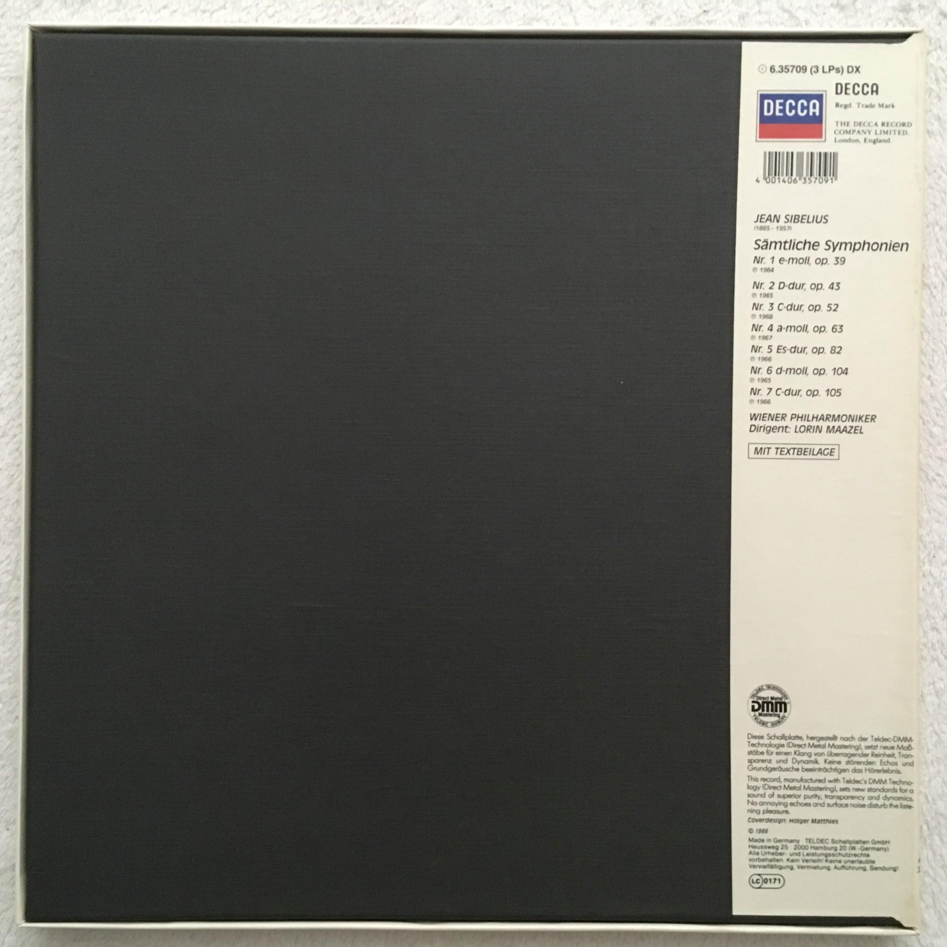 E514 Sibelius Complete Symphonies Maazel VPO 3LP DECCA 6.35709 DX Digital Stereo