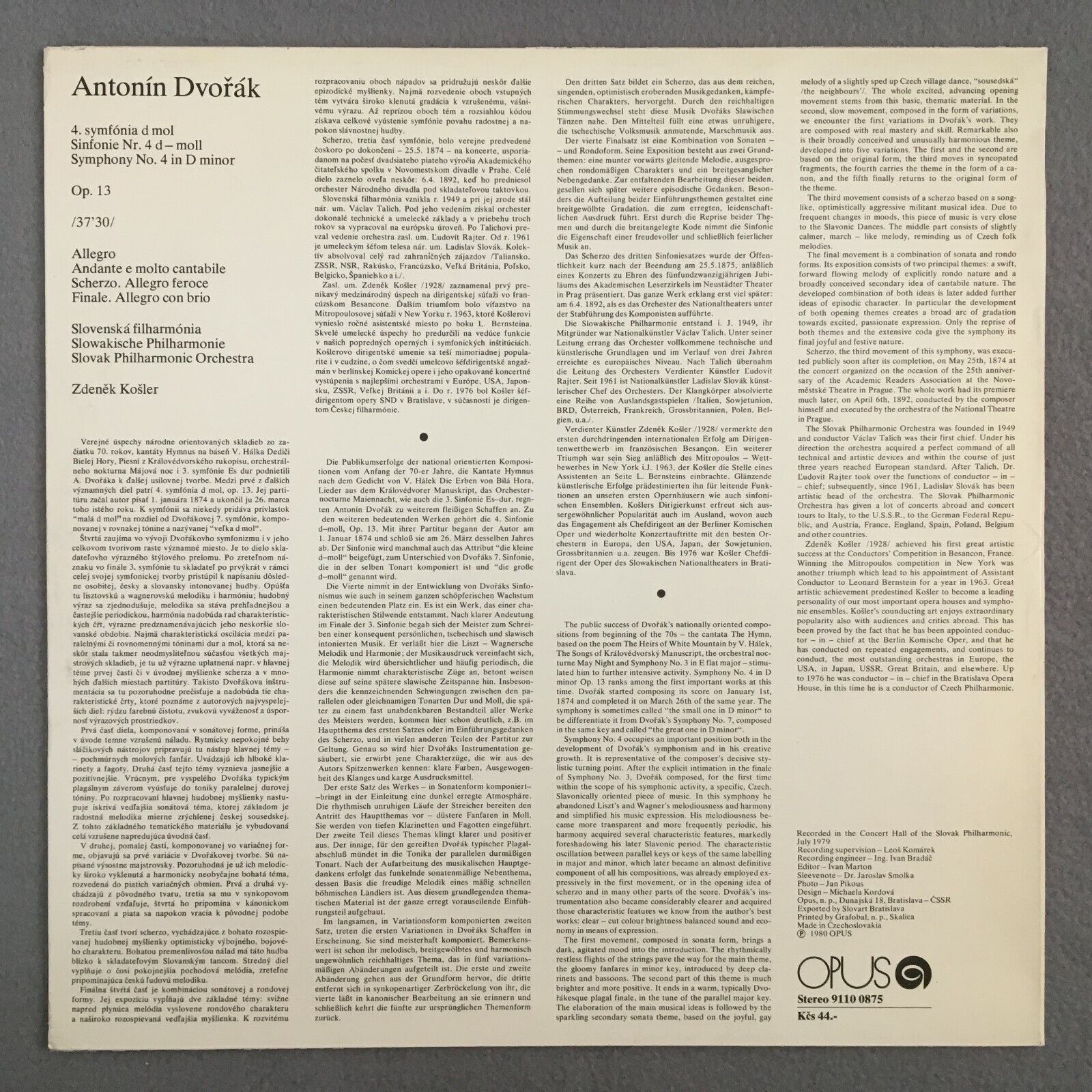 Z974 Dvorak Symphony No.4 Kosler OPUS 9110 0875 Stereo