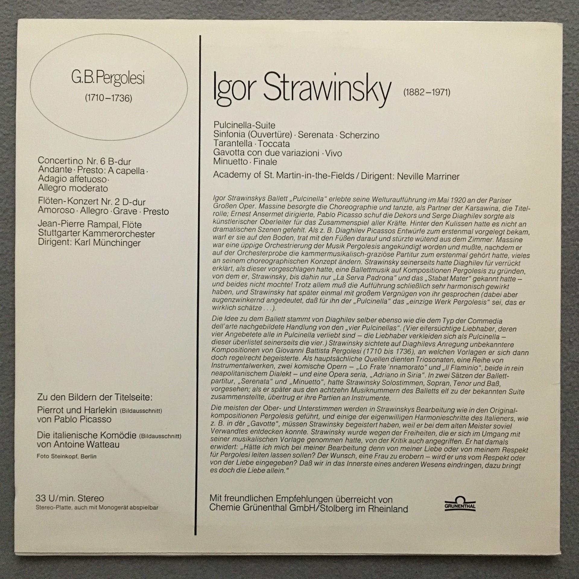 U178 Stravinsky Pulcinella Suite Pergolesi Rampal Marriner Private TST 77 931 St