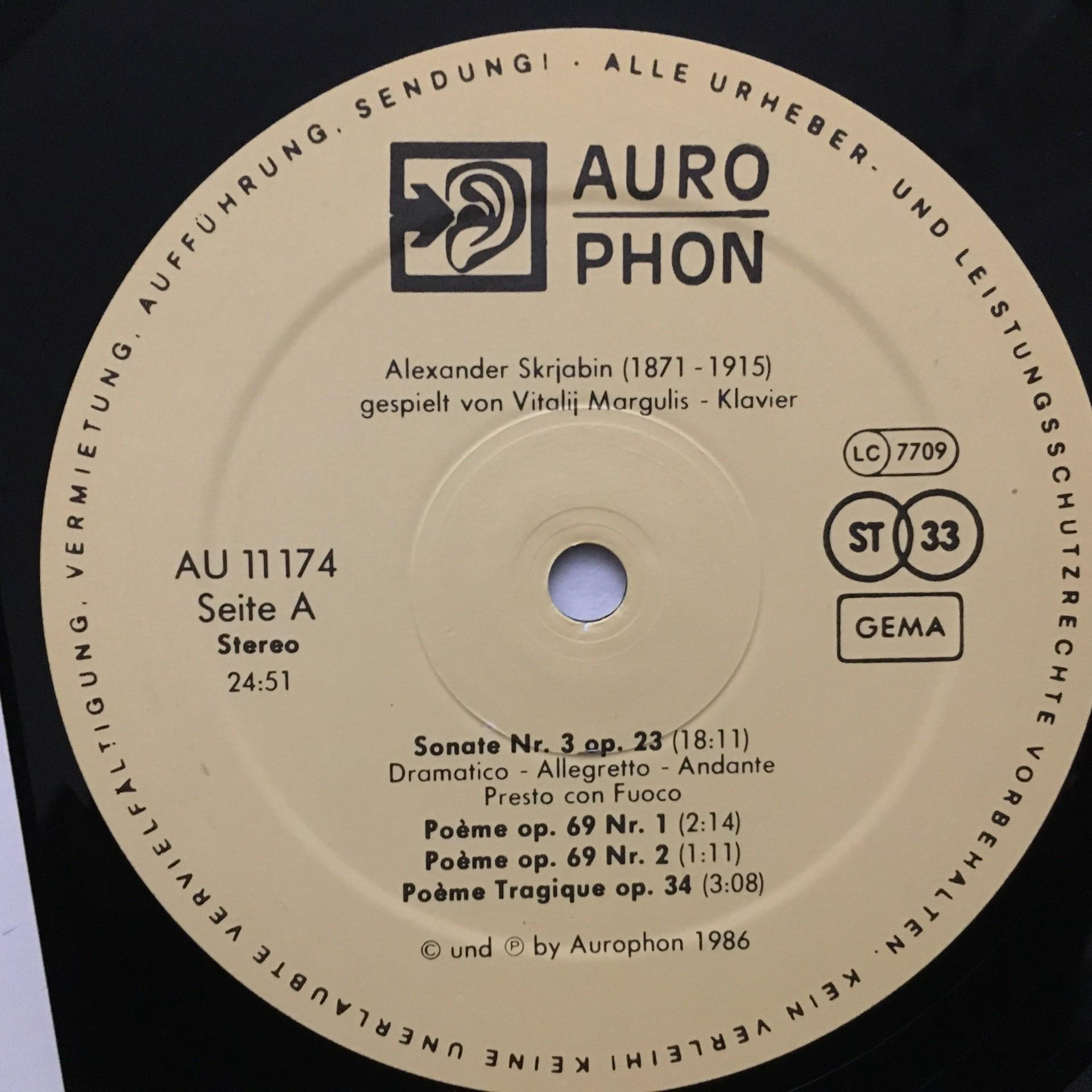 U183 Skrjabin Poemes Margulis Piano Aurophon AU-11174 Digital Stereo
