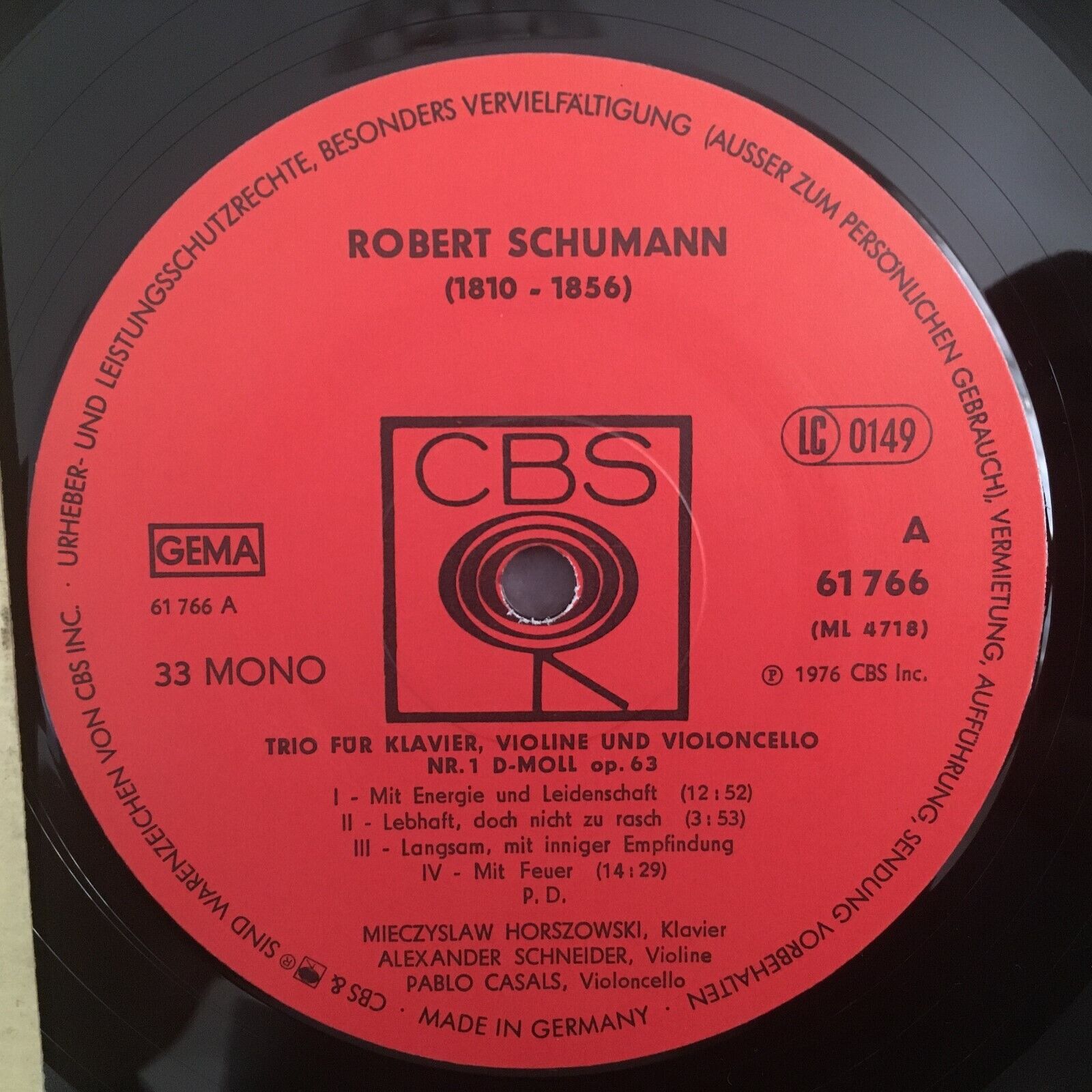 Z981 Schumann Piano Trio Casals Horszowski Schneider Mannes CBS 61 766
