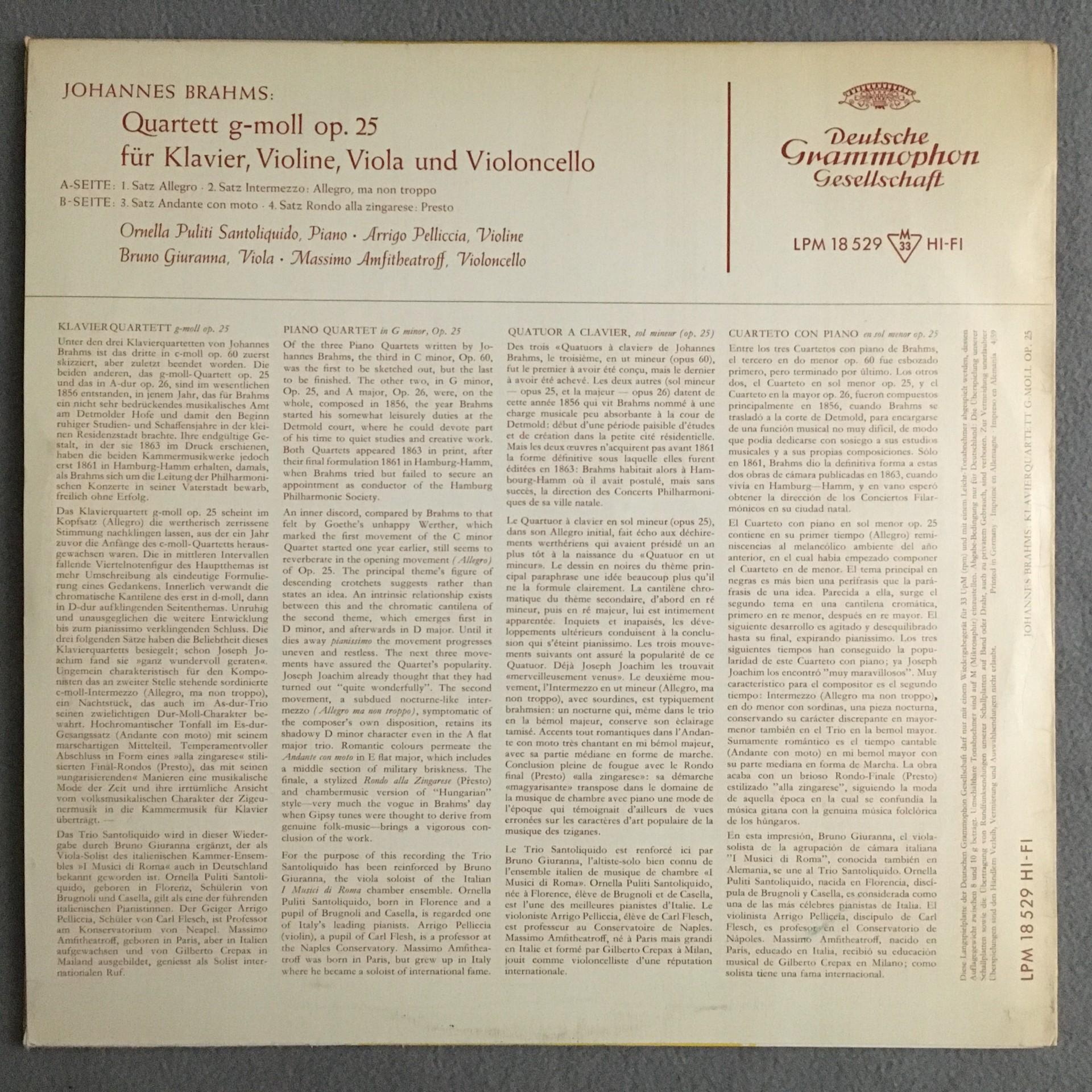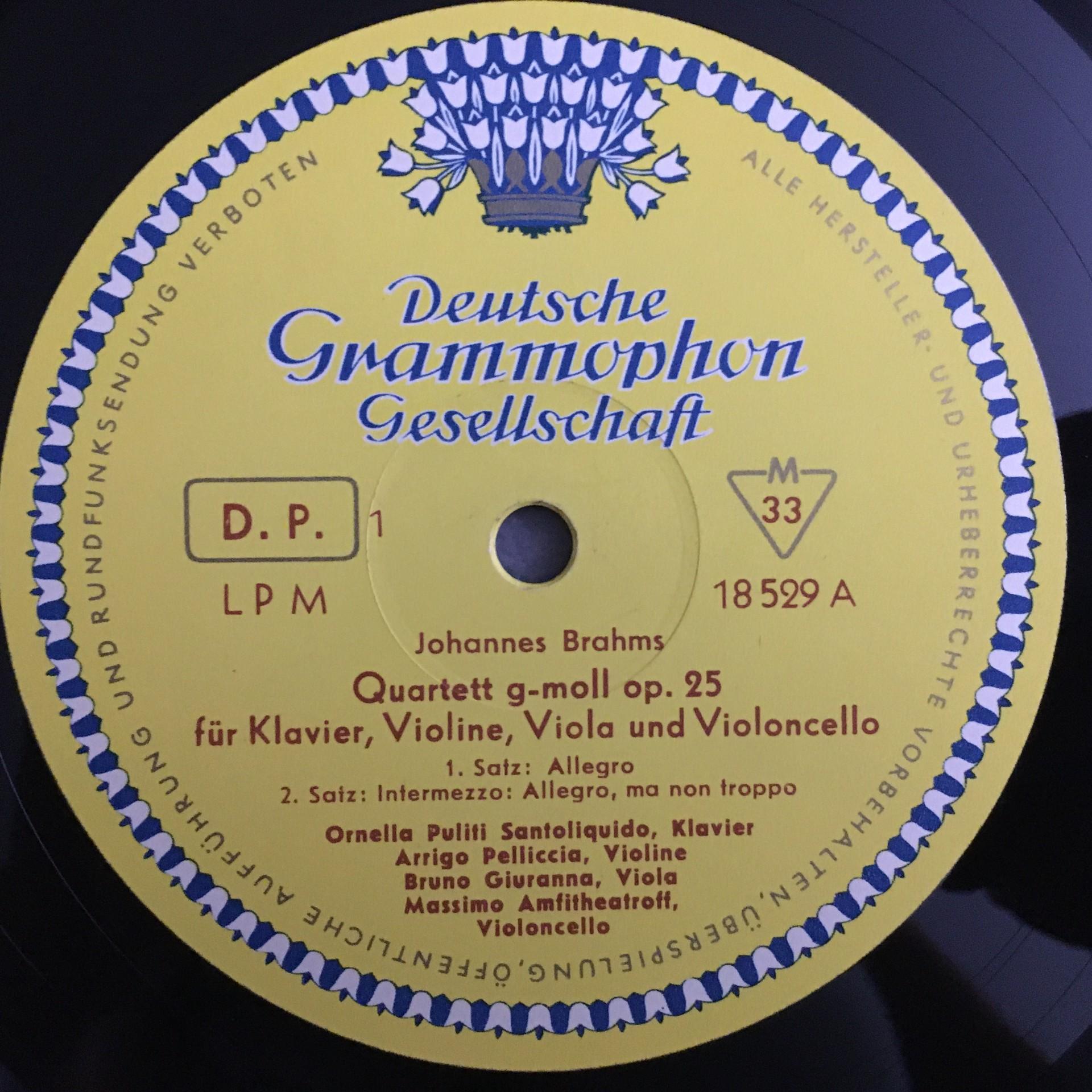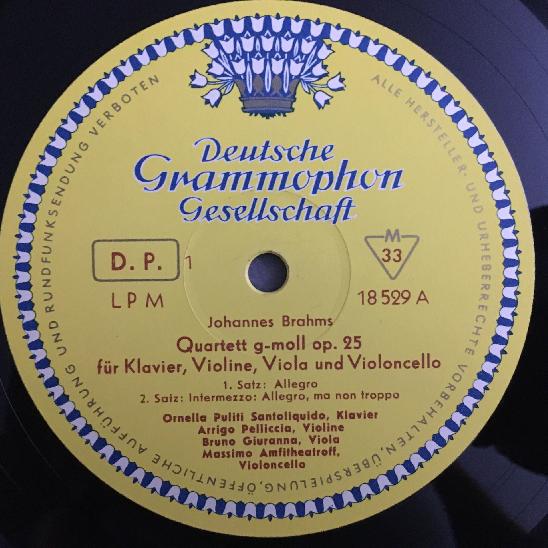 N692 Brahms Quartet Op.25 Giuranna Trio Santoliquido DGG LPM 18 529 Tulip