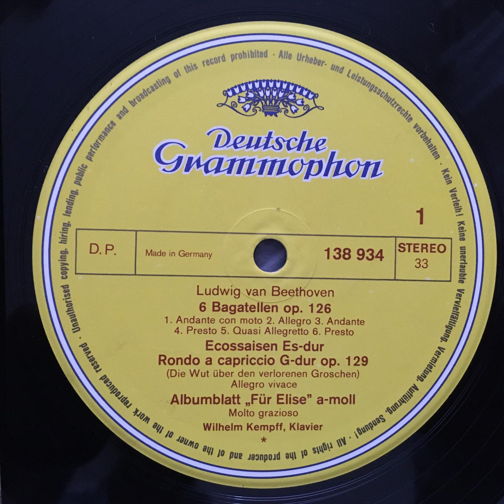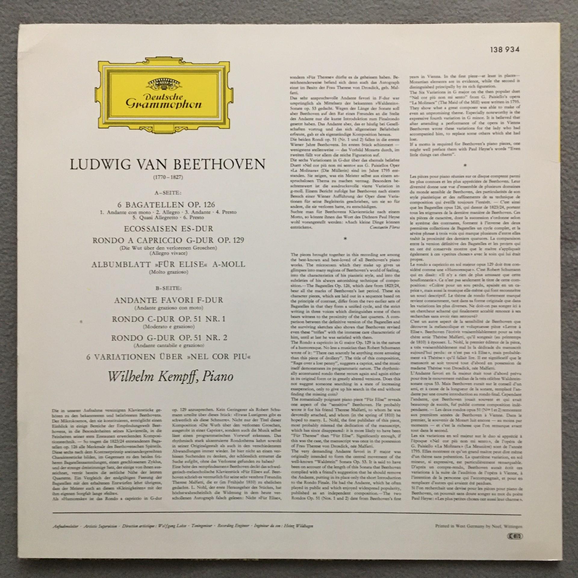 U197 Beethoven Bagatelles Kempff Piano DGG 138 934 Stereo