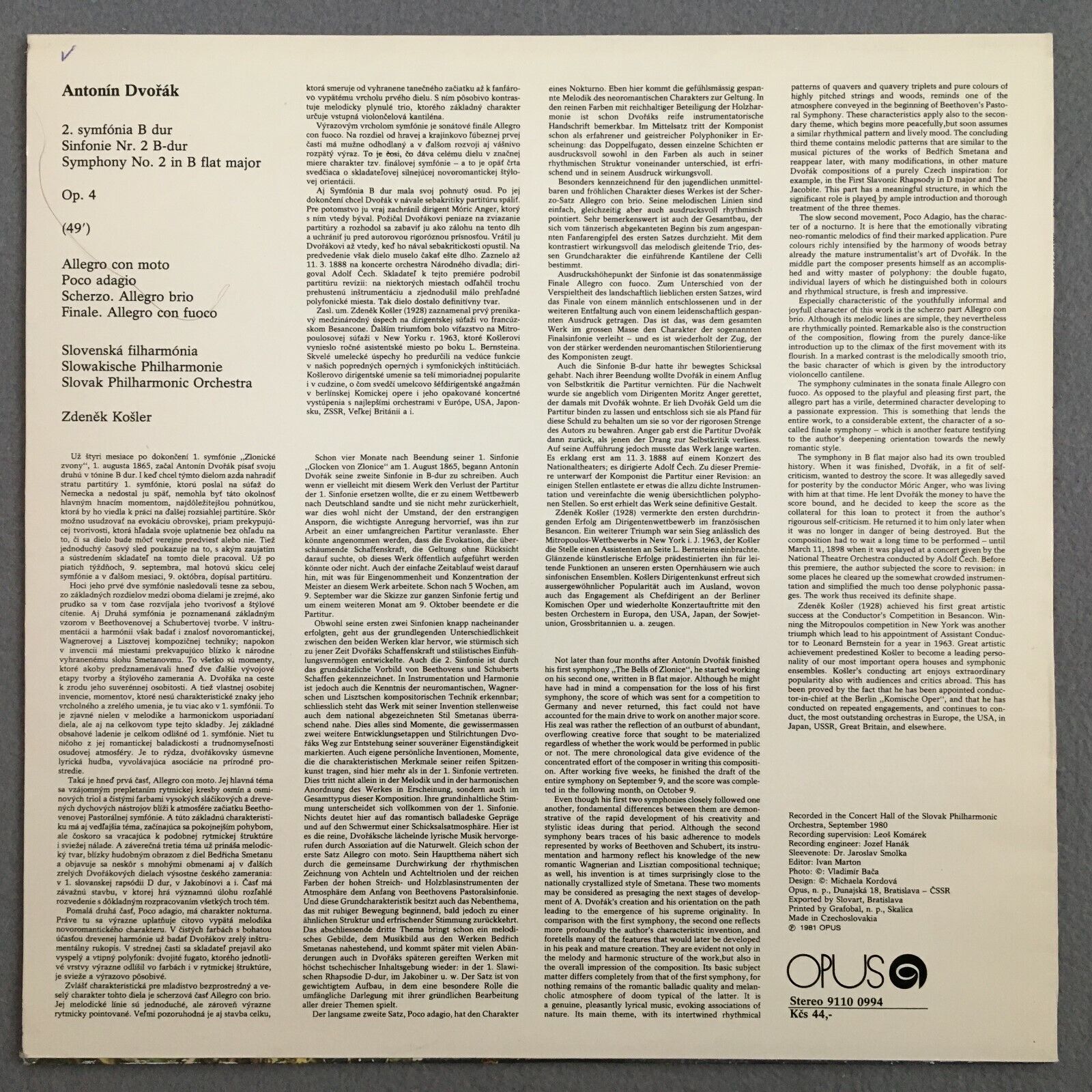 Z986 Dvorak Symphony No.2 Kosler OPUS 9110 0994 Stereo