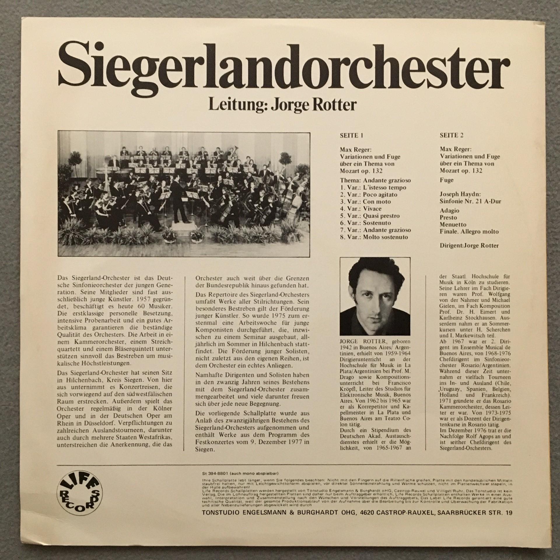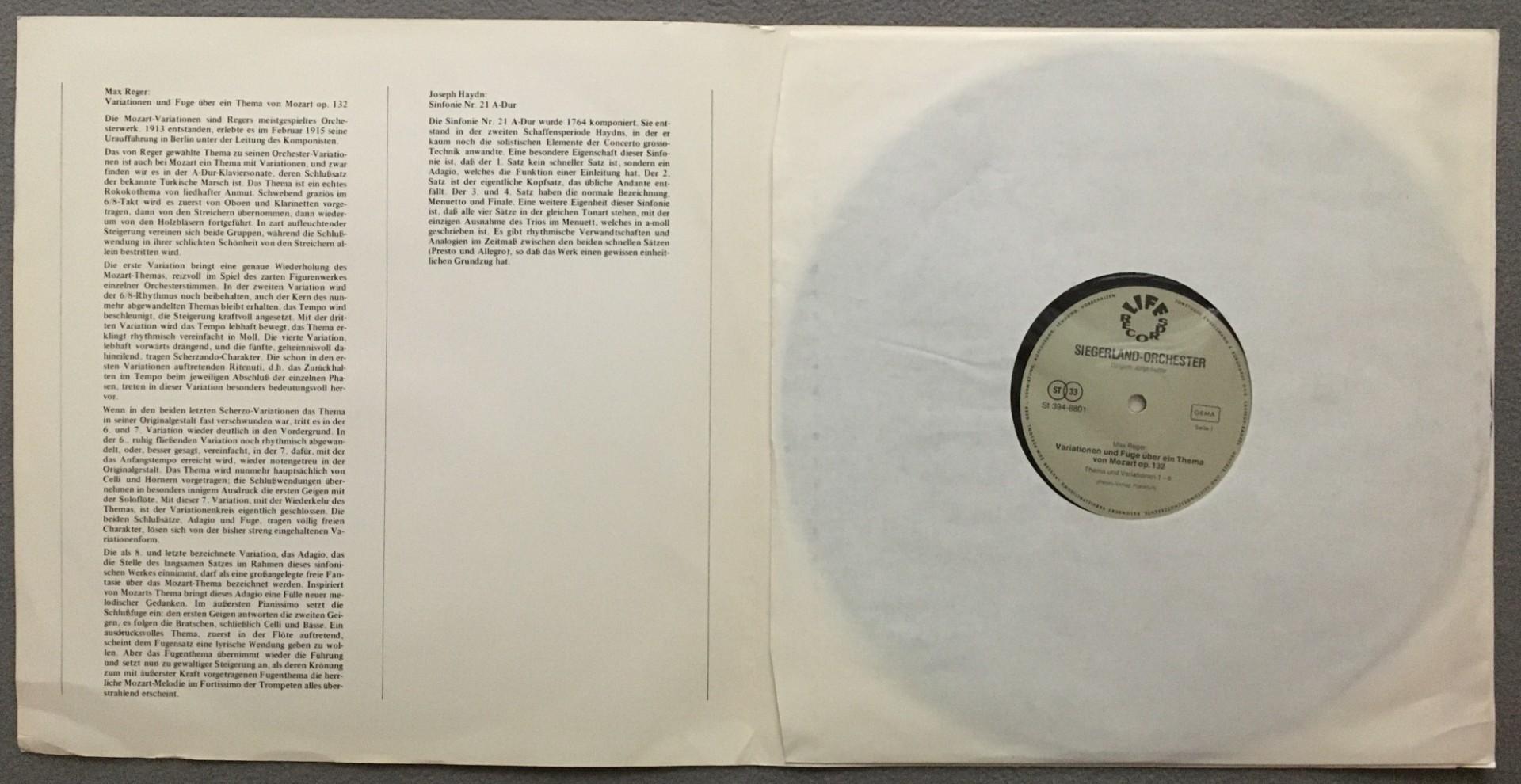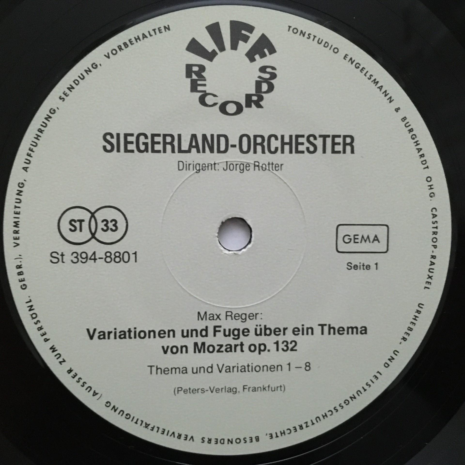 U204 Reger Variations & Fugue from Mozart Rotter Life Records 394-8801 Stereo