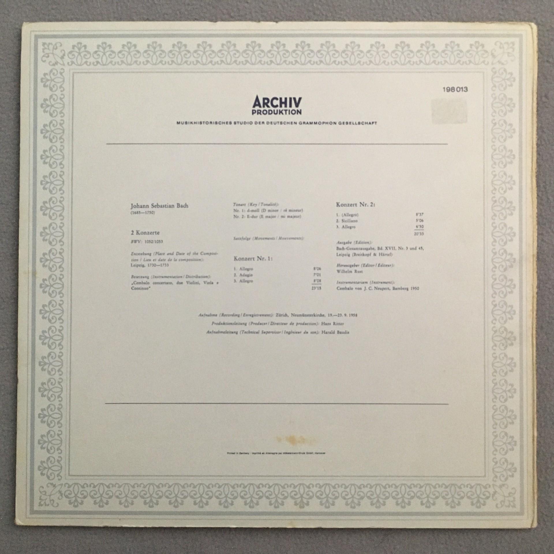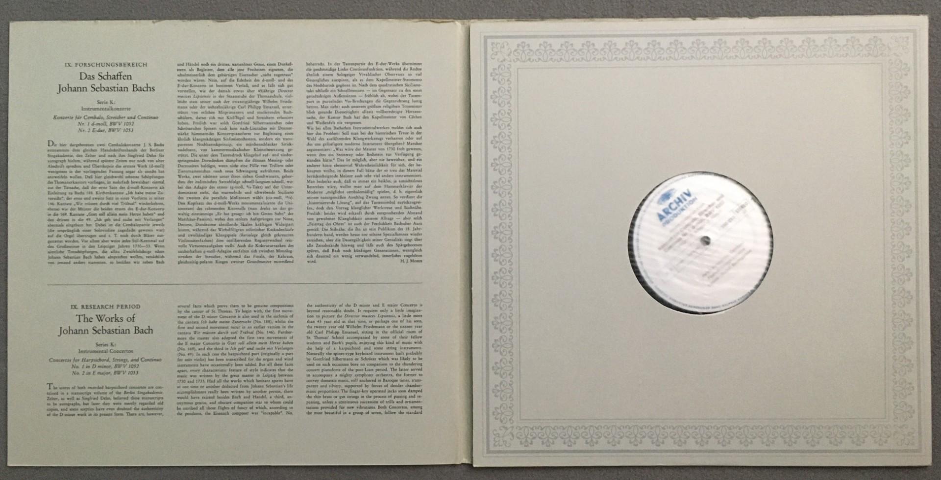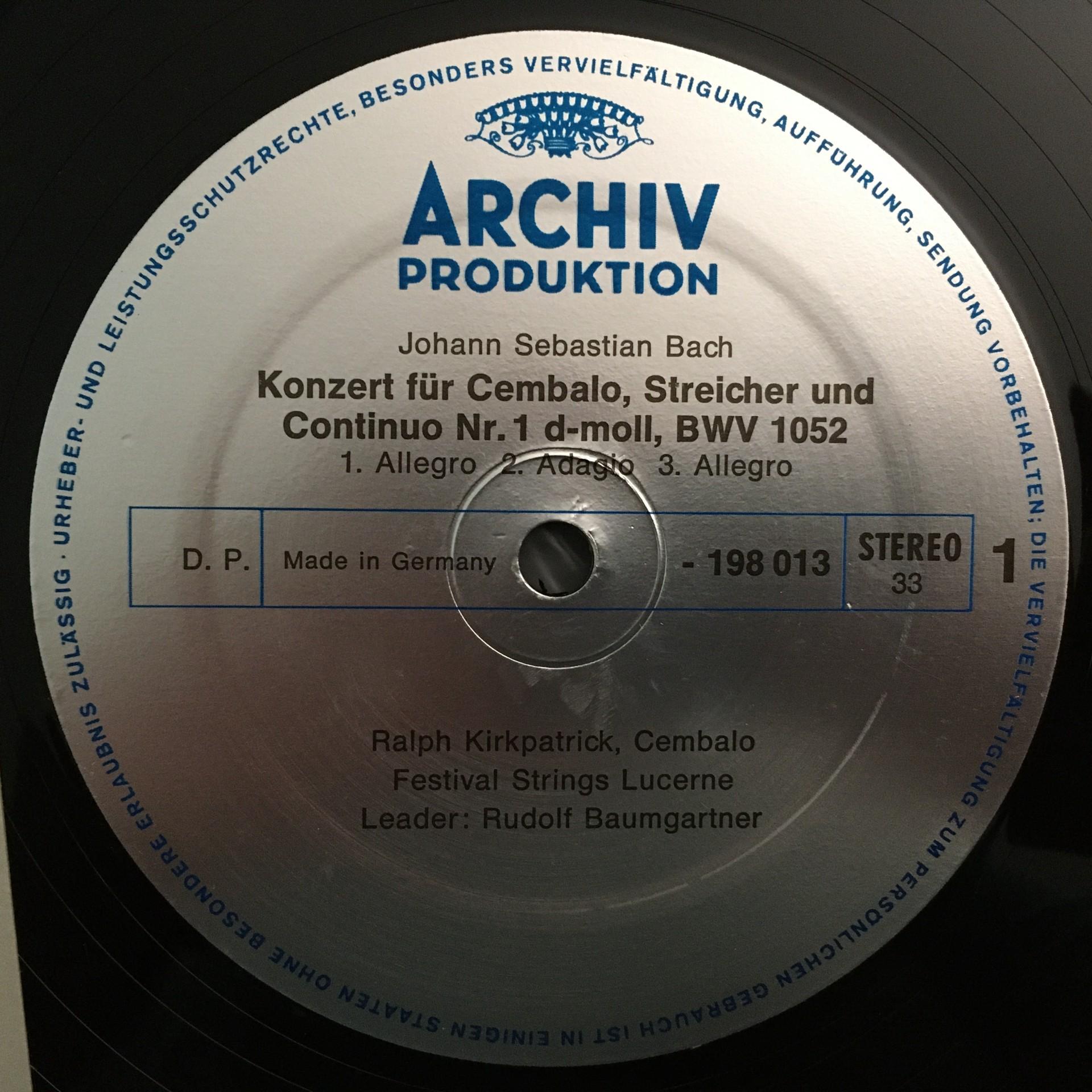 U207 Bach Harpsichord Concertos Kirkpatrick Baumgartner DGG Archiv 198 013 St