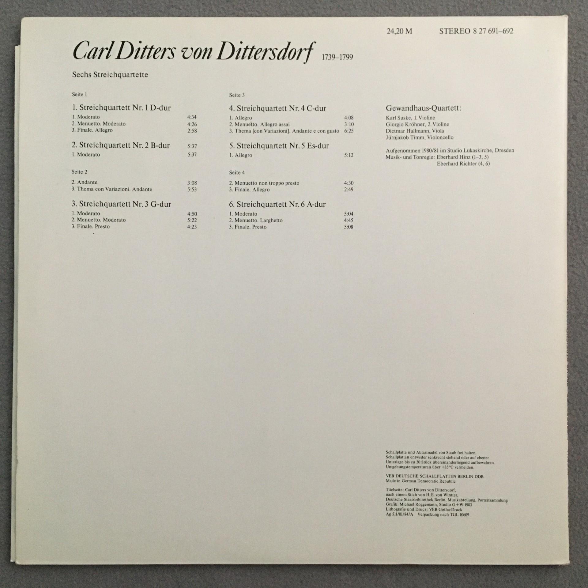 U209 Ditters v. Dittersdorf 6 String Quartets 2LP Eterna 8 27 691-692 Stereo