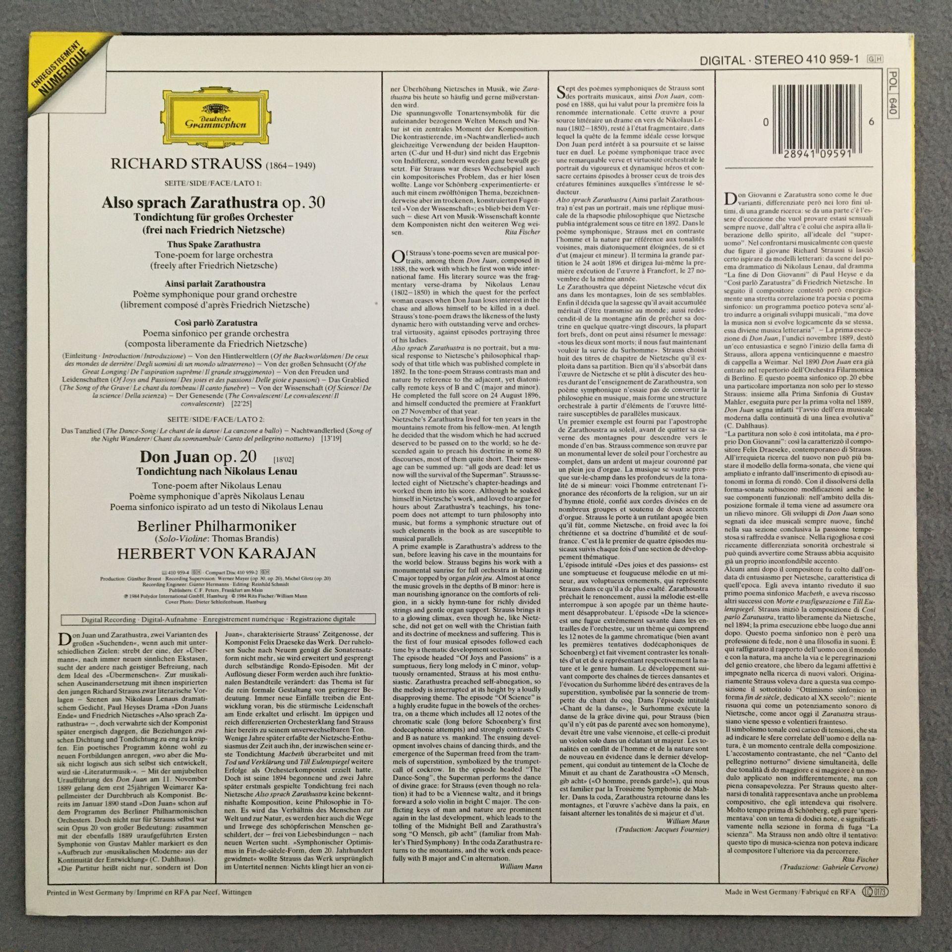 U231 R. Strauss Also sprach Zarathustra Karajan DGG 410 959-1 Digital Stereo