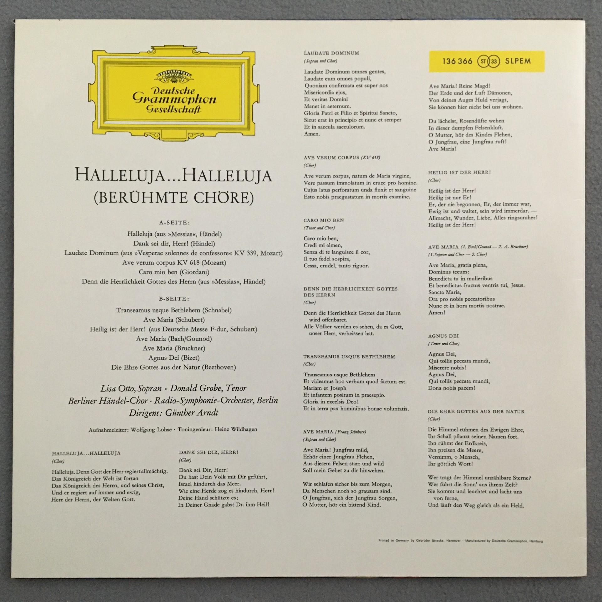 U235 Halleluja Halleluja Famous Choirs DGG 136 366 SLPEM Stereo Tulip