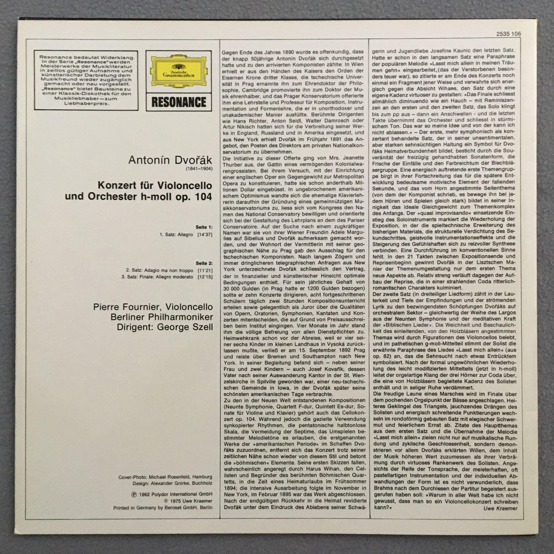 U242 Dvorak Cello Concerto Fournier Szell BPO DGG 2535 106 Stereo