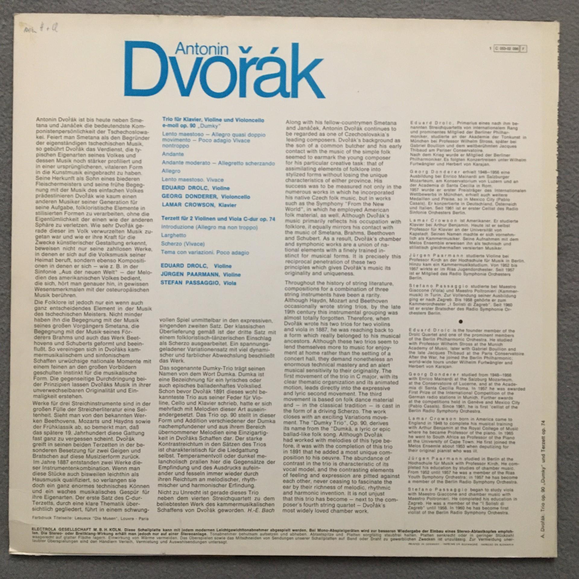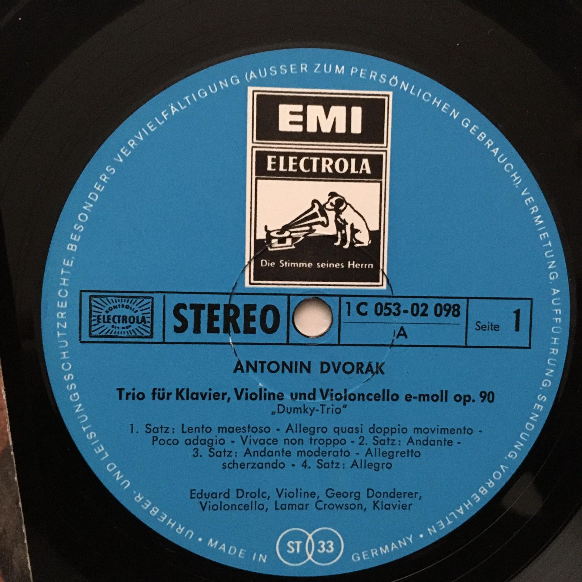 U258 Dvorak Piano Trio Drolc Donderer Crowson EMI 1 C 053-02 098 Stereo
