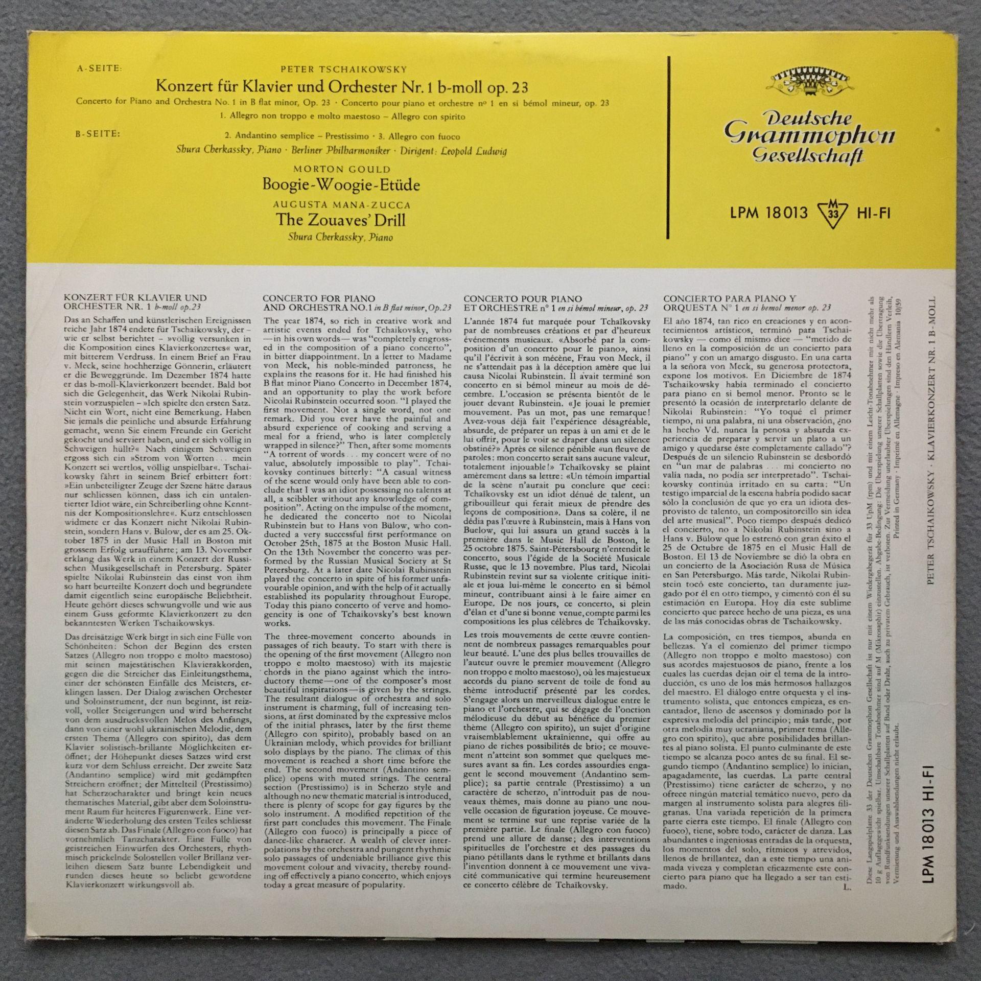 U262 Tchaikovsky Piano Concerto No.1 Cherkassky Ludwig DGG LPM 18 013 Tulip