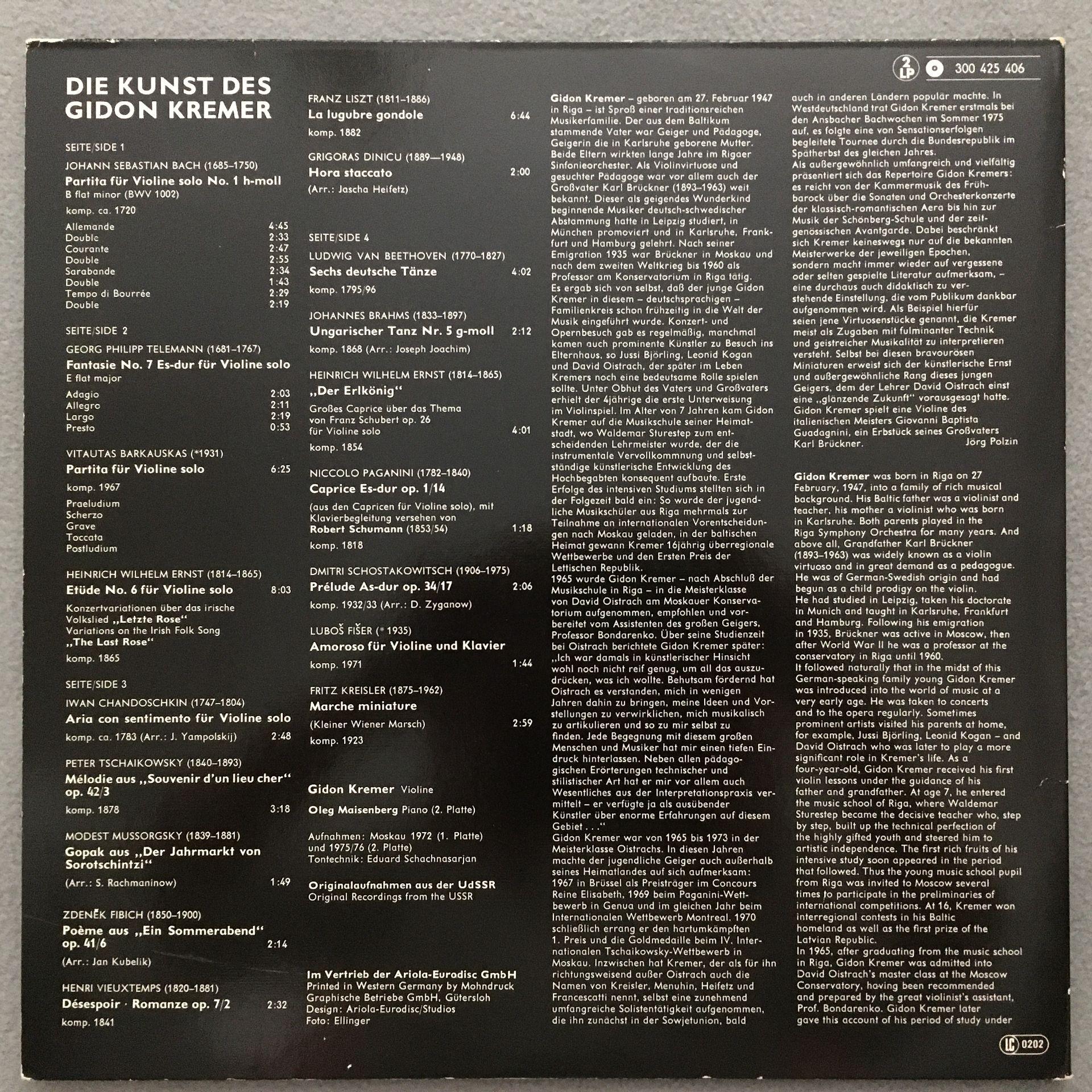 U269 The Art of Gidon Kremer Bach Beethoven 2LP Eurodisc 300 425 406 Stereo
