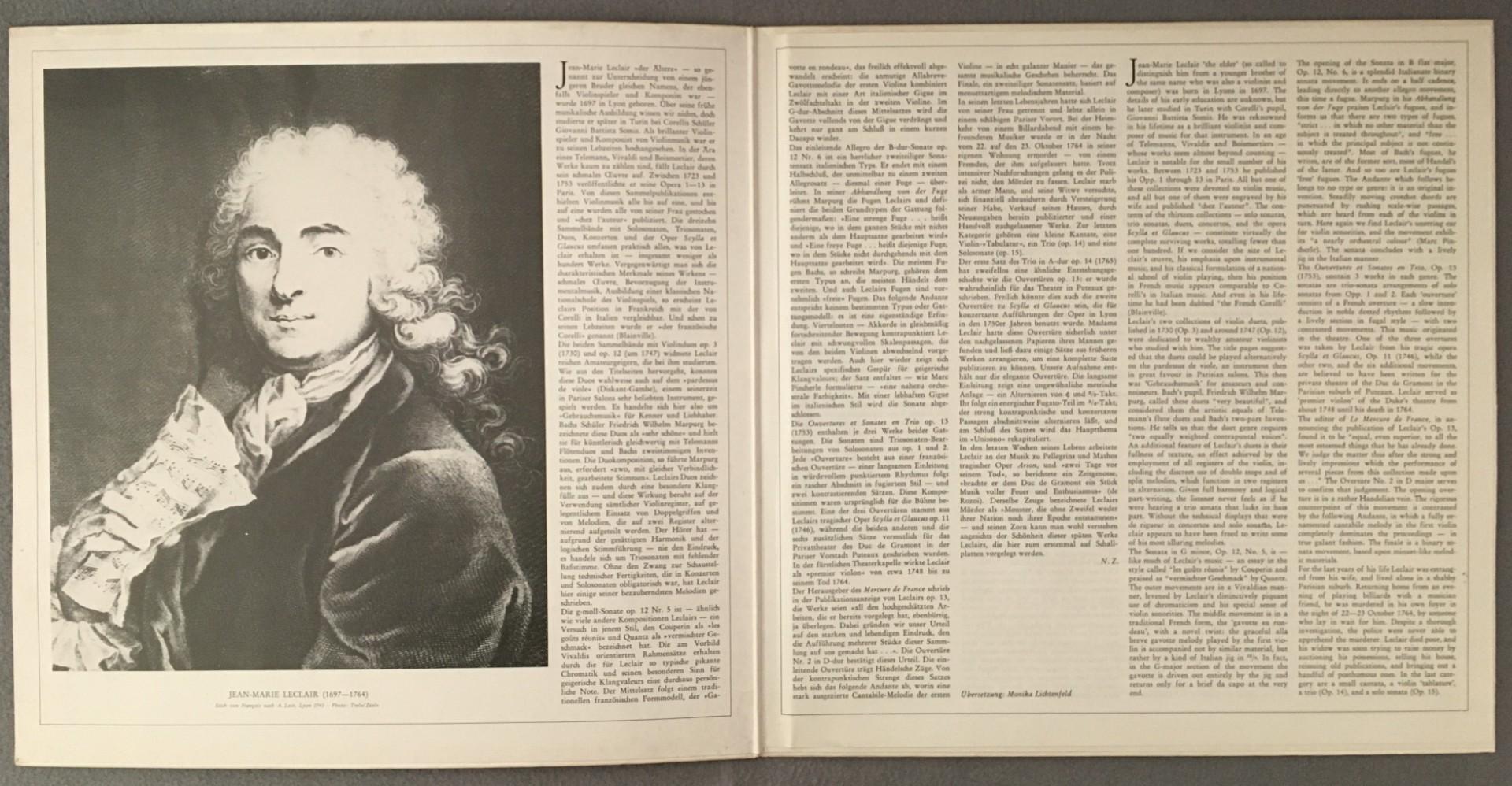 U271 Leclair Overture Sonatas Musica Antiqua Goebel DGG Archiv 2533 414 Stereo