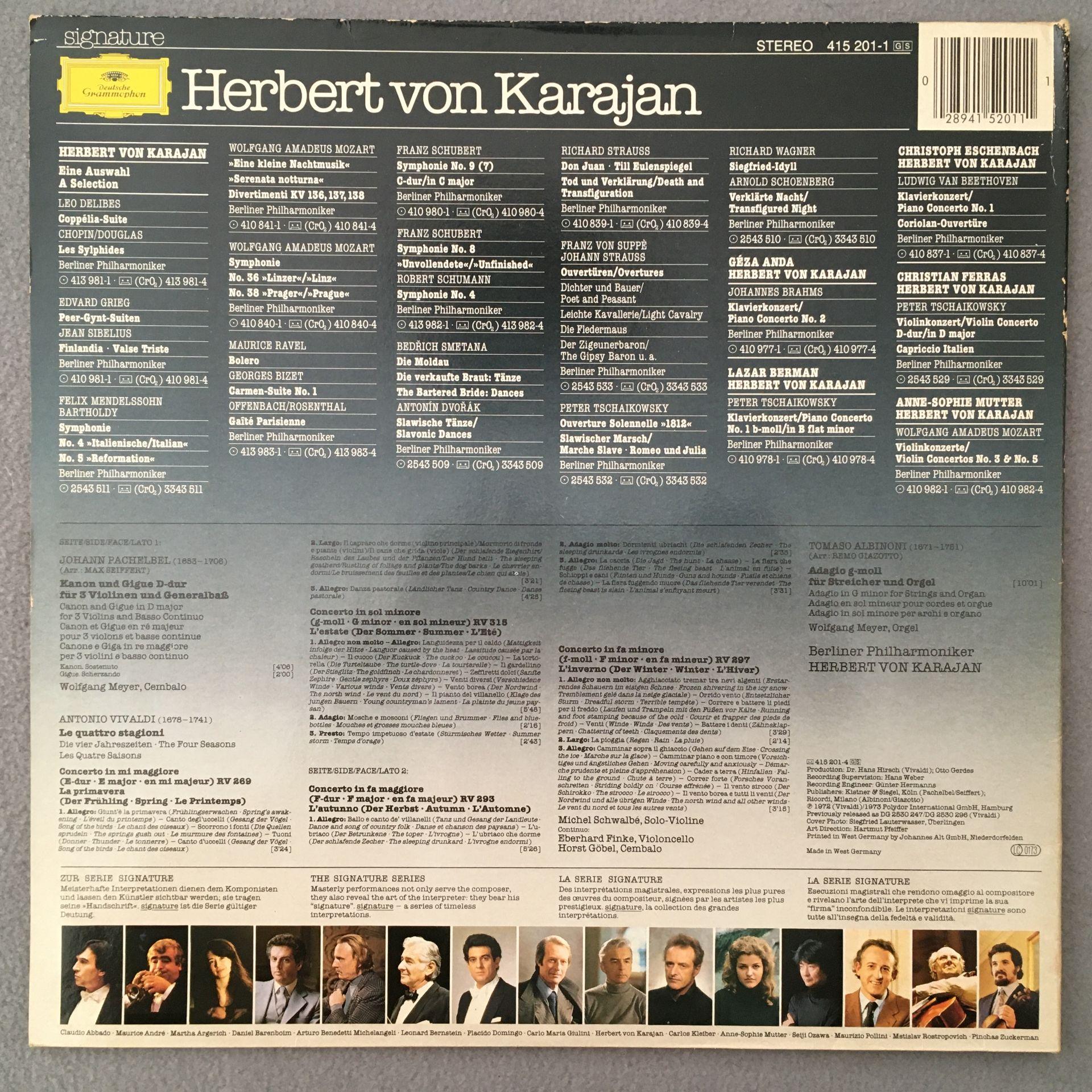 U276 Vivaldi The 4 Seasons Albinoni Schwalbe Karajan DGG 415 201-1 Stereo