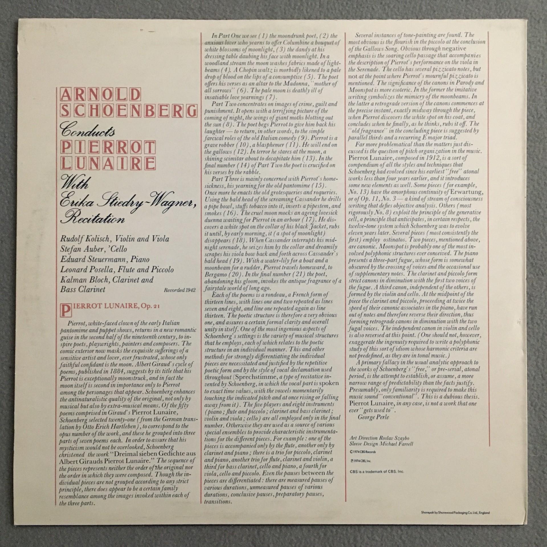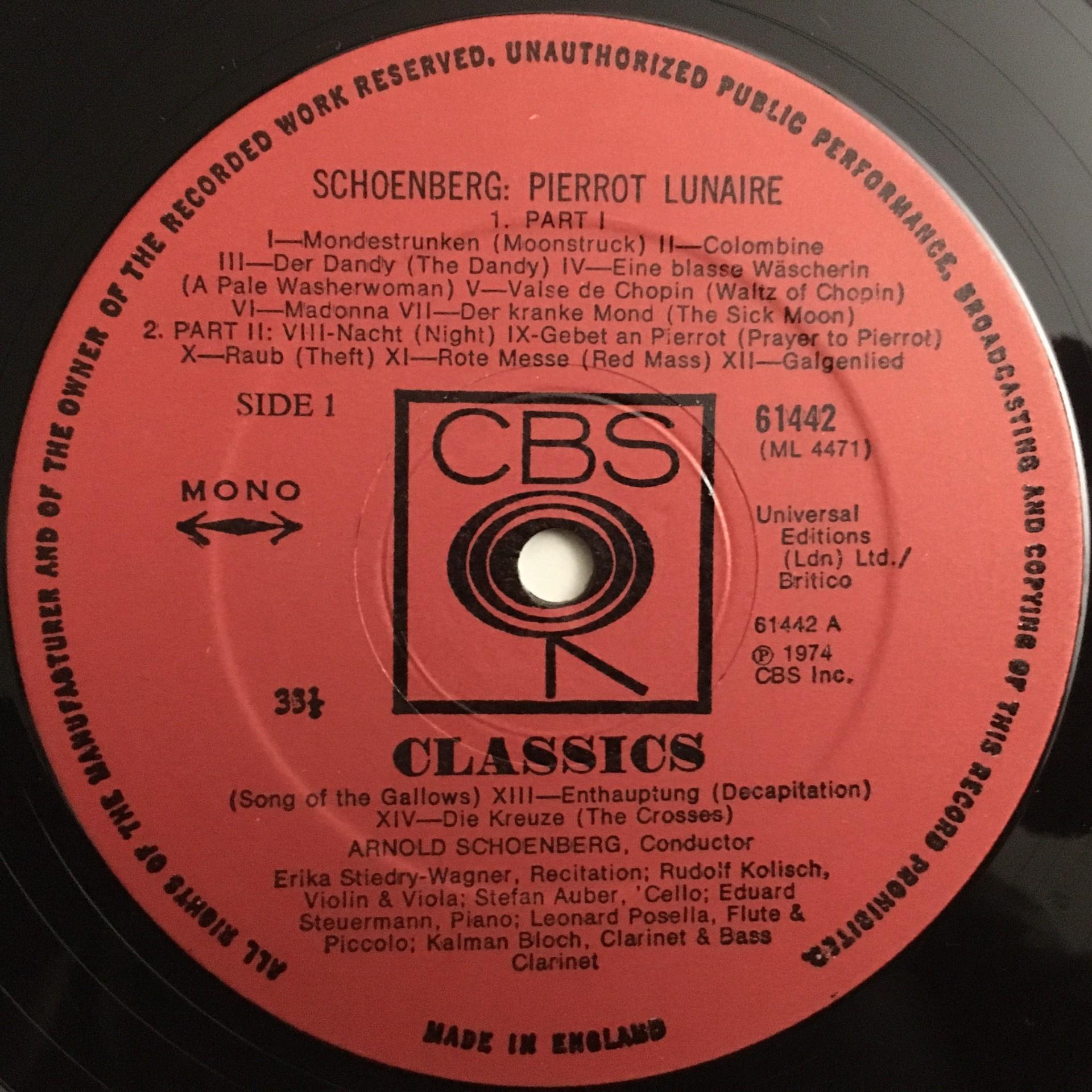U283 Schönberg conducts Pierrot Lunaire Stiedry-Wagner Auber CBS 61 442
