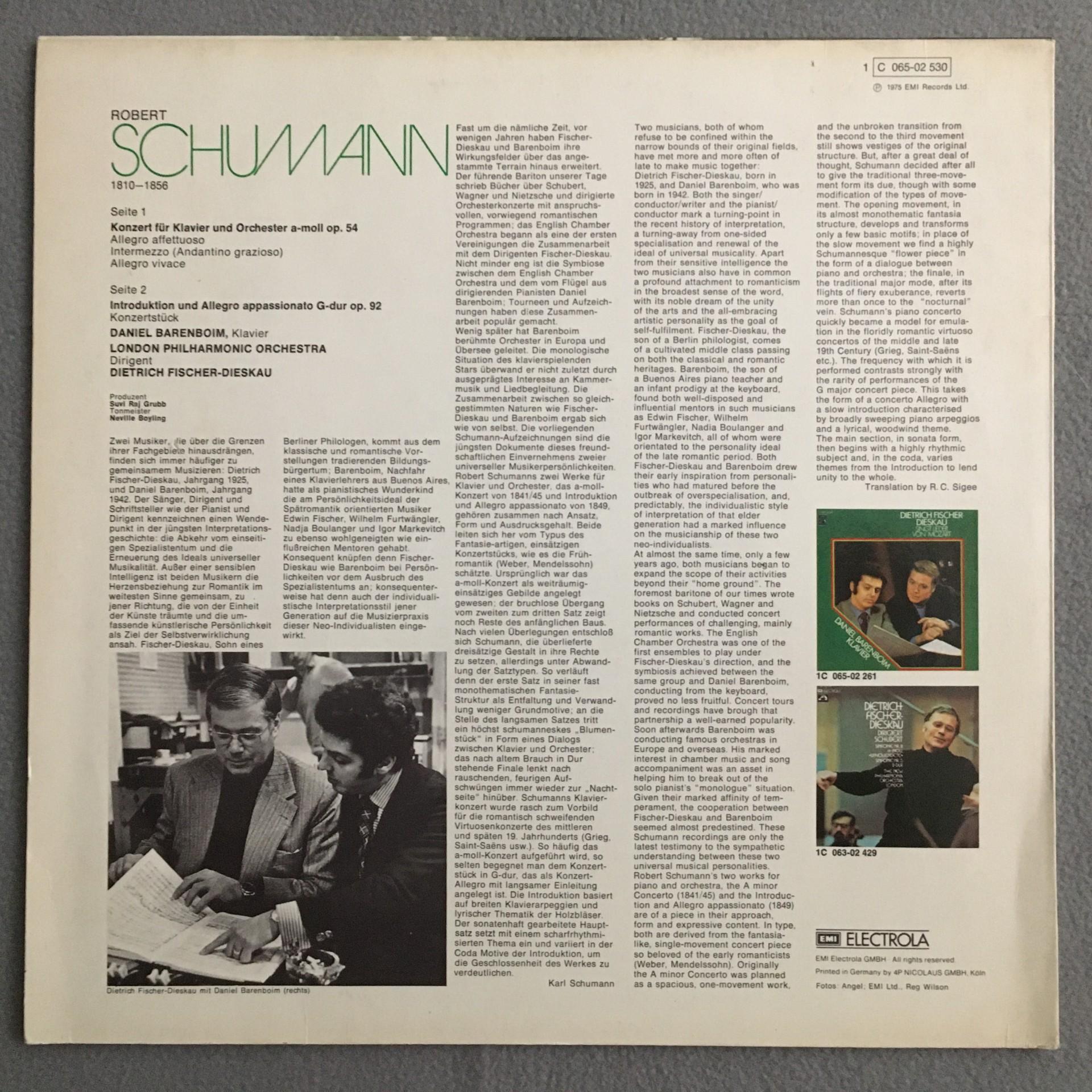 U284 Schumann Piano Concerto Barenboim Fischer-Dieskau EMI 1 C 065-02 530 St