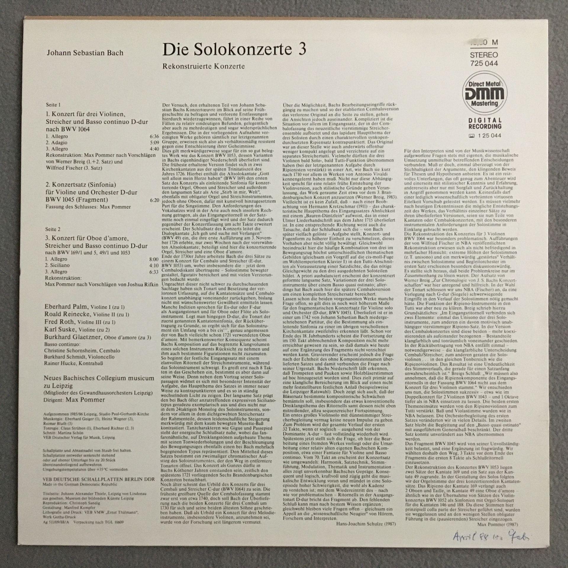 U286 Bach Solo Concertos Palm Roth Pommer Eterna 725 044 Digital Stereo