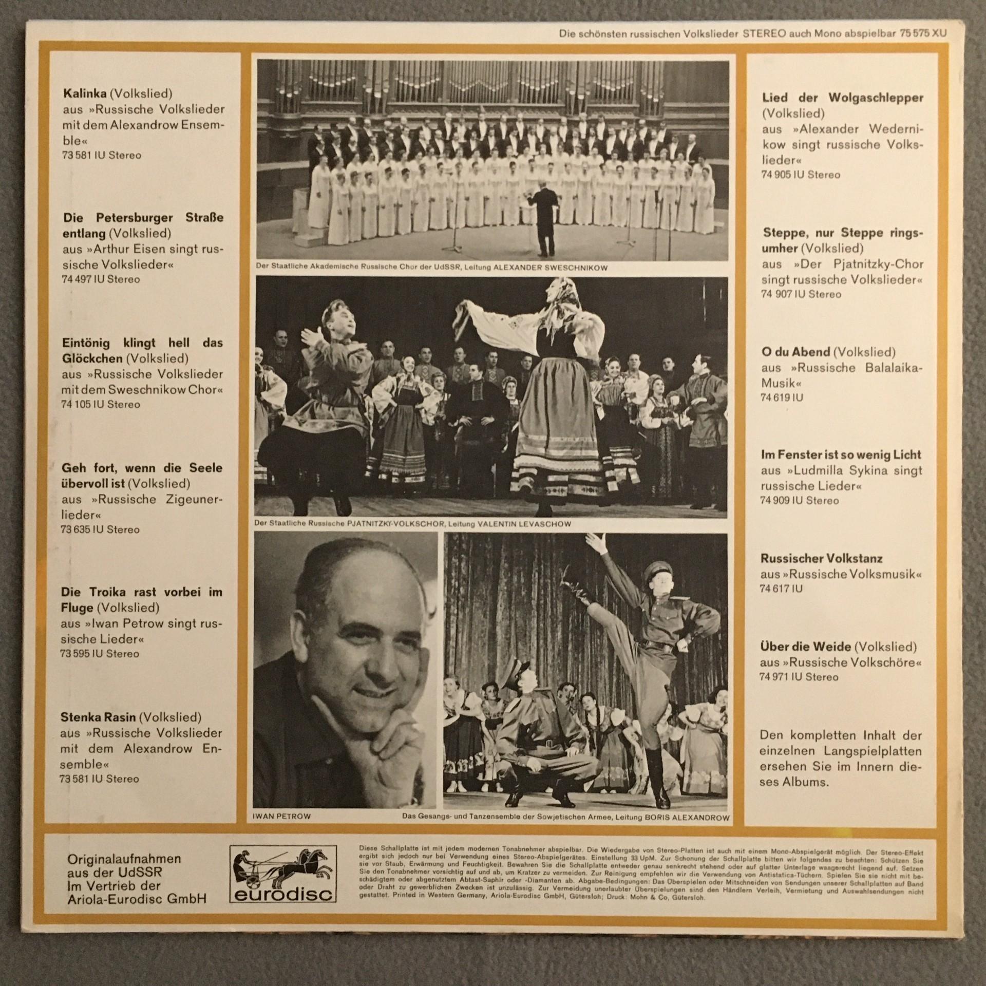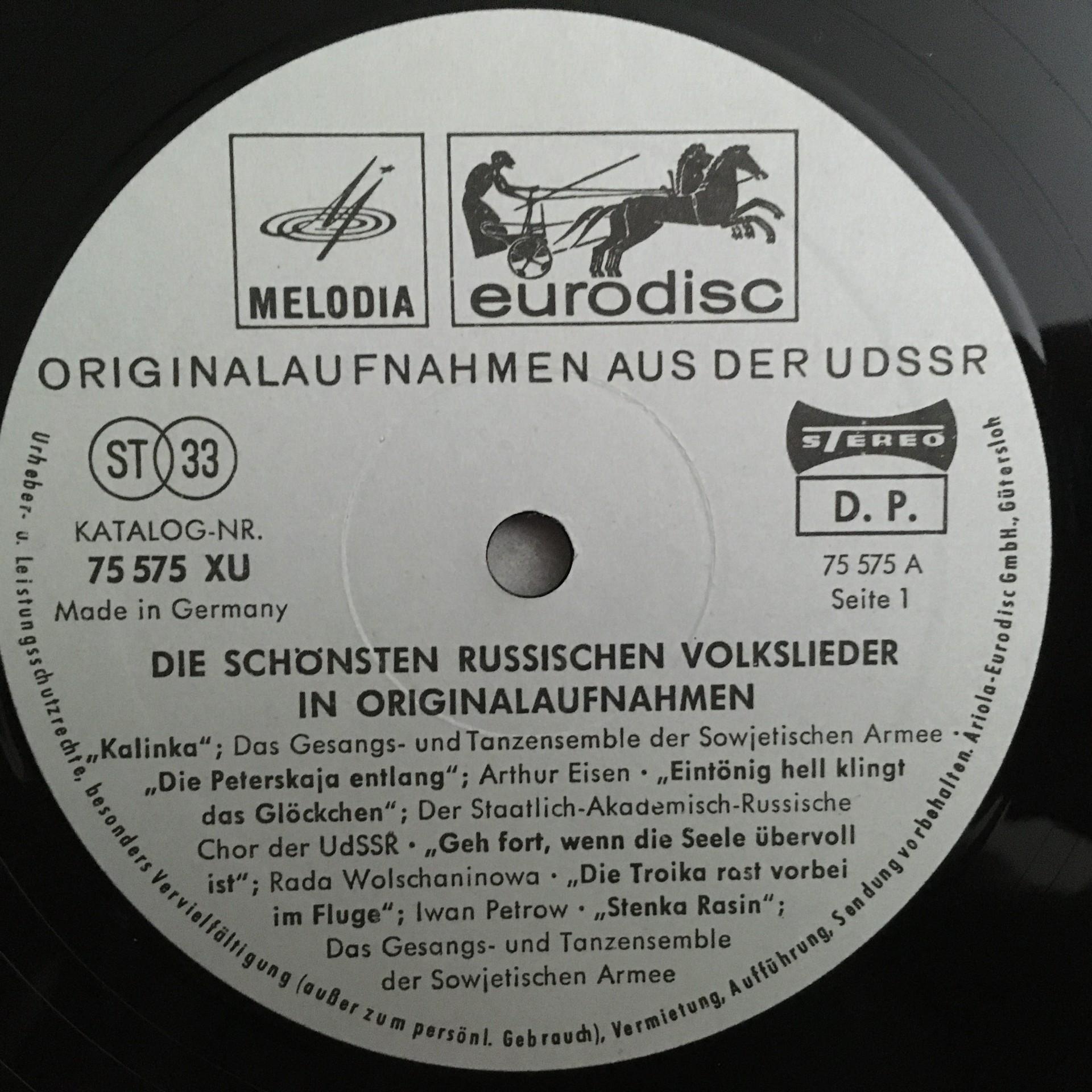 U291 Russian Folk Songs Kalinka Petrov Eurodisc 75 575 XU Stereo
