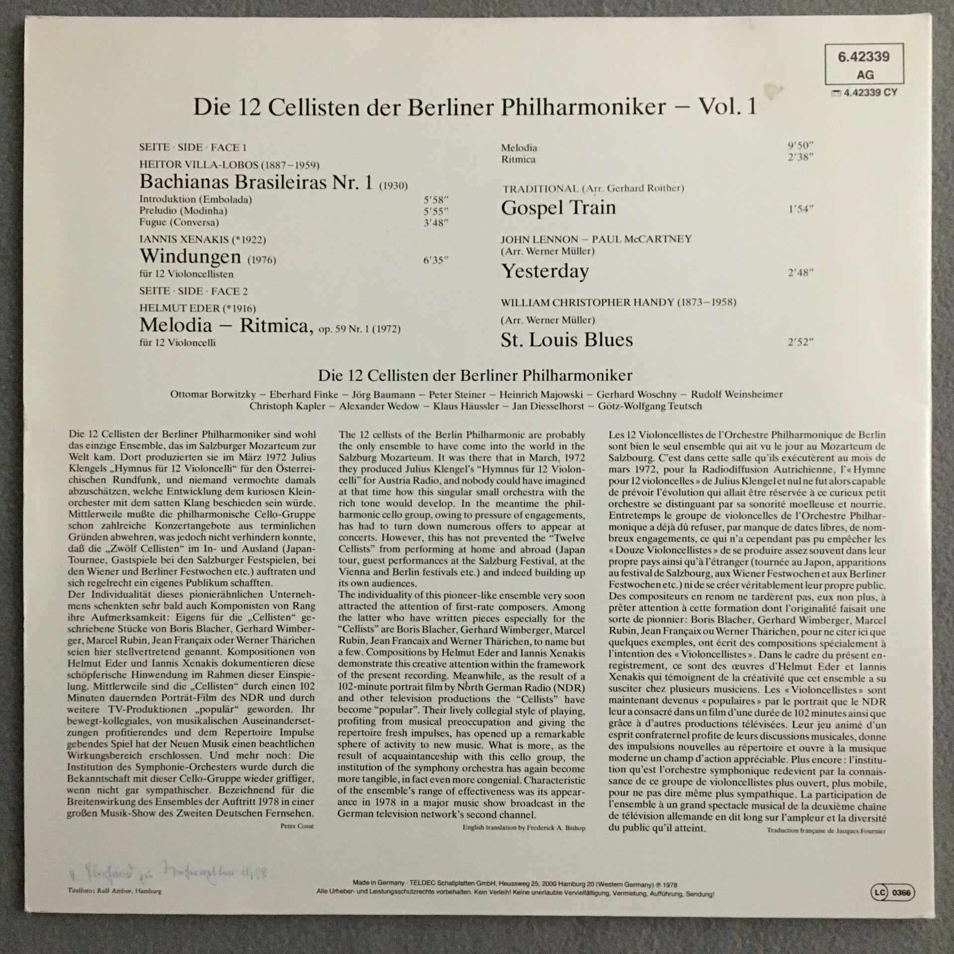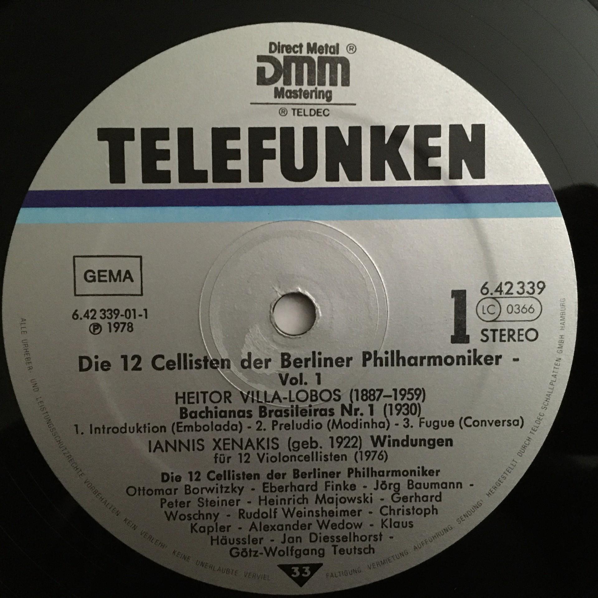 U295 12 Philharmonic Cellists BPO Villa-Lobos Eder Telefunken 6.42339 AG Stereo