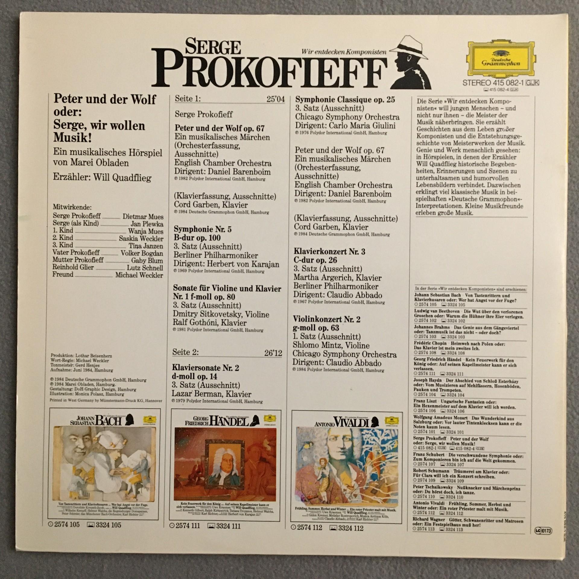 U296 Prokofiev Peter & the Wolf Abbado Mintz Barenboim DGG 415 082-1 Stereo