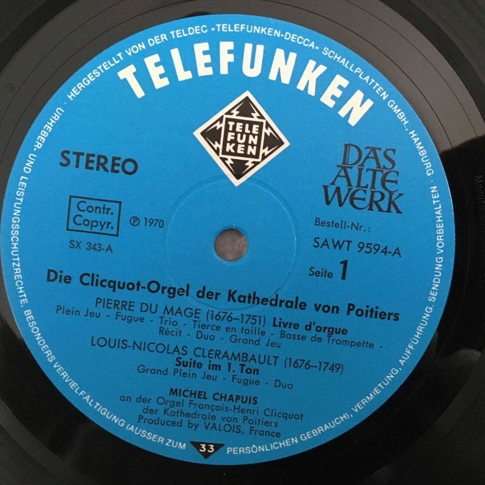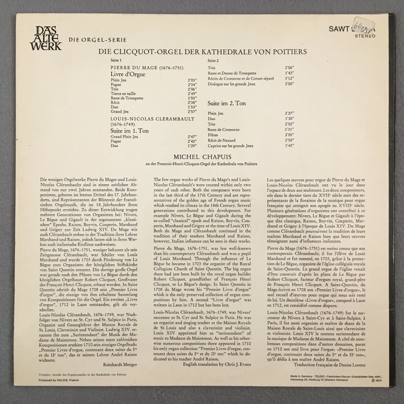 Y052 Du Mage Clerambault Suite Chapuis/Organ Telefunken SAWT 9594 A Stereo