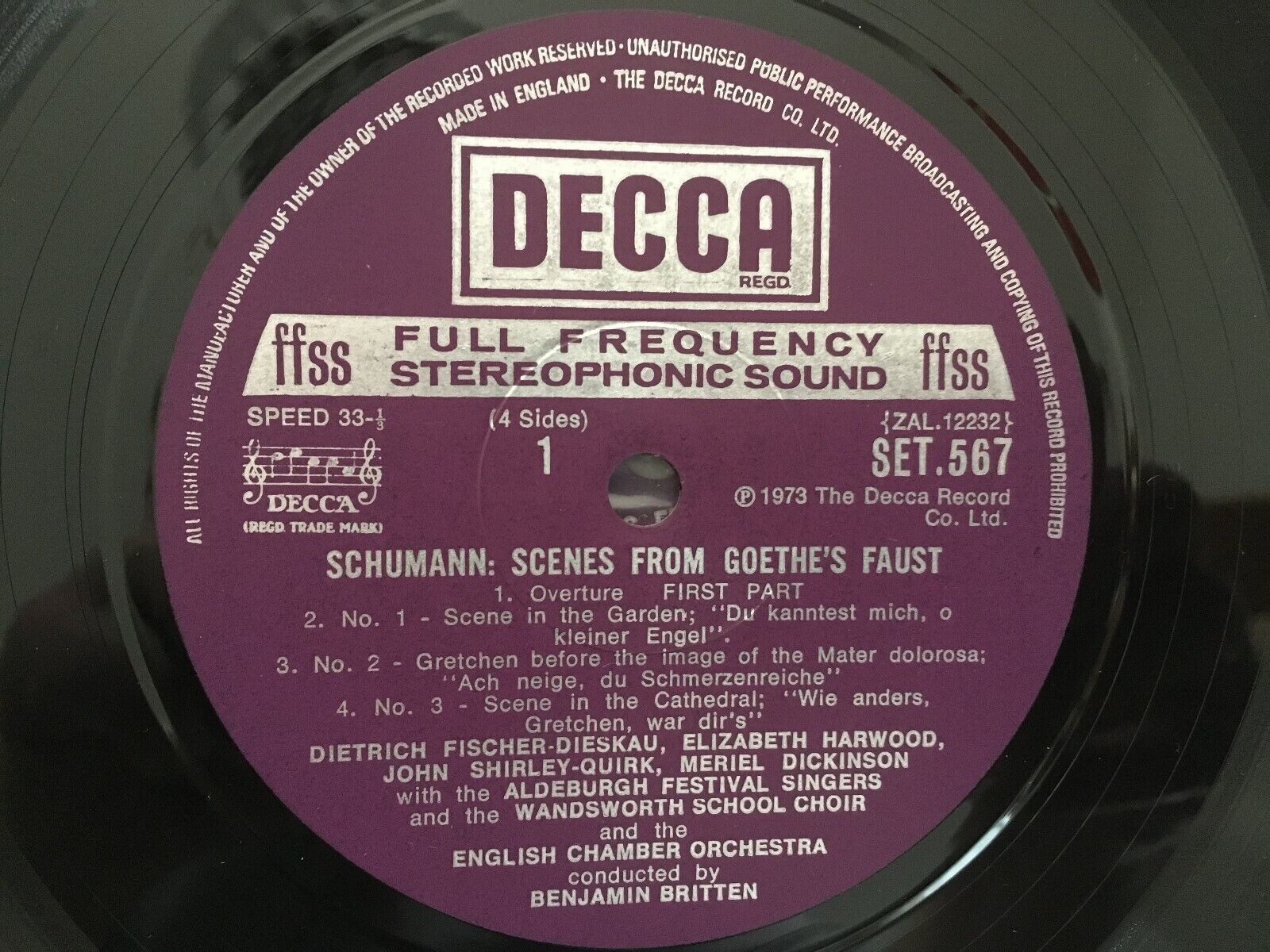 G154 Schumann Faust Fischer-Dieskau Pears Britten 2LP DECCA SET 567-8 Stereo
