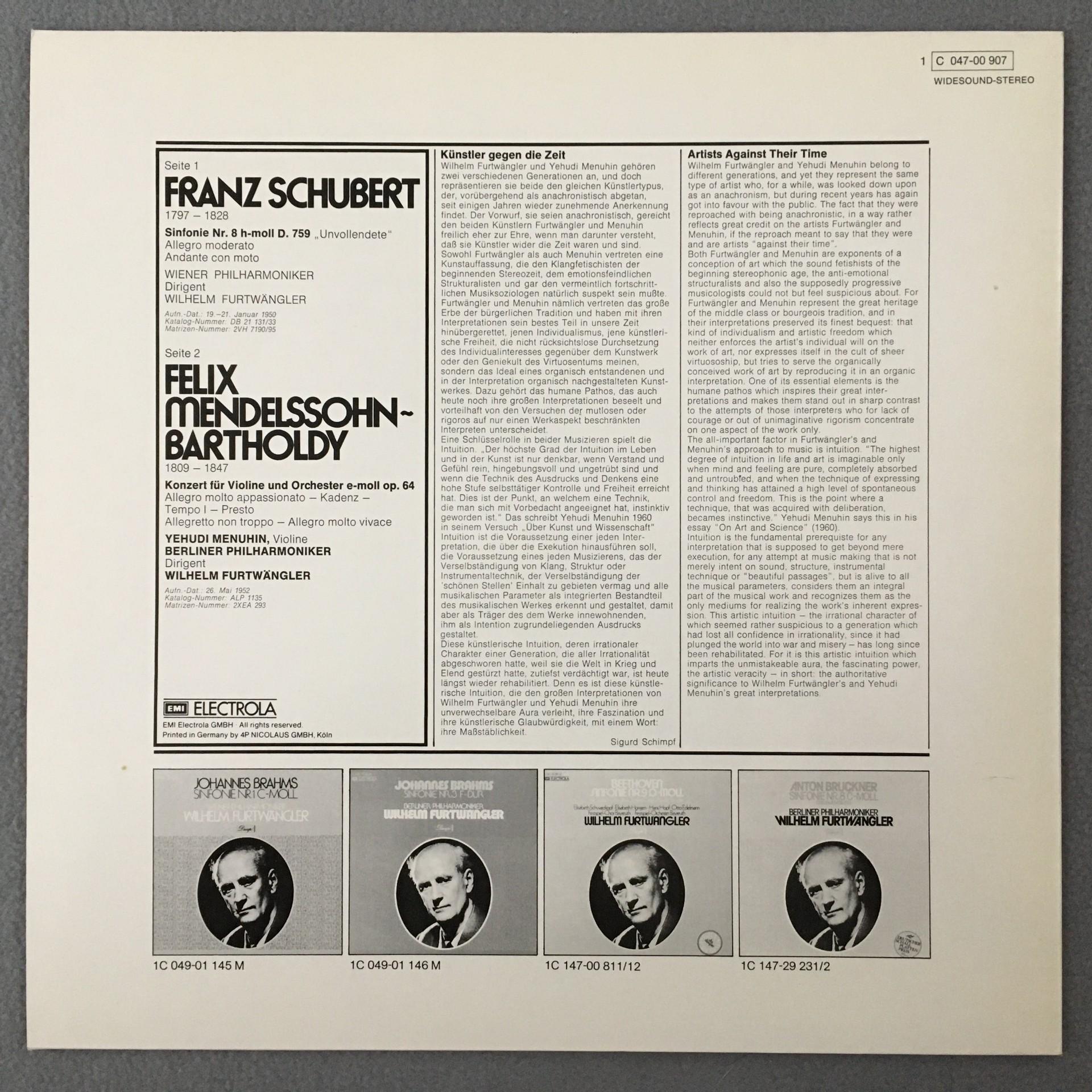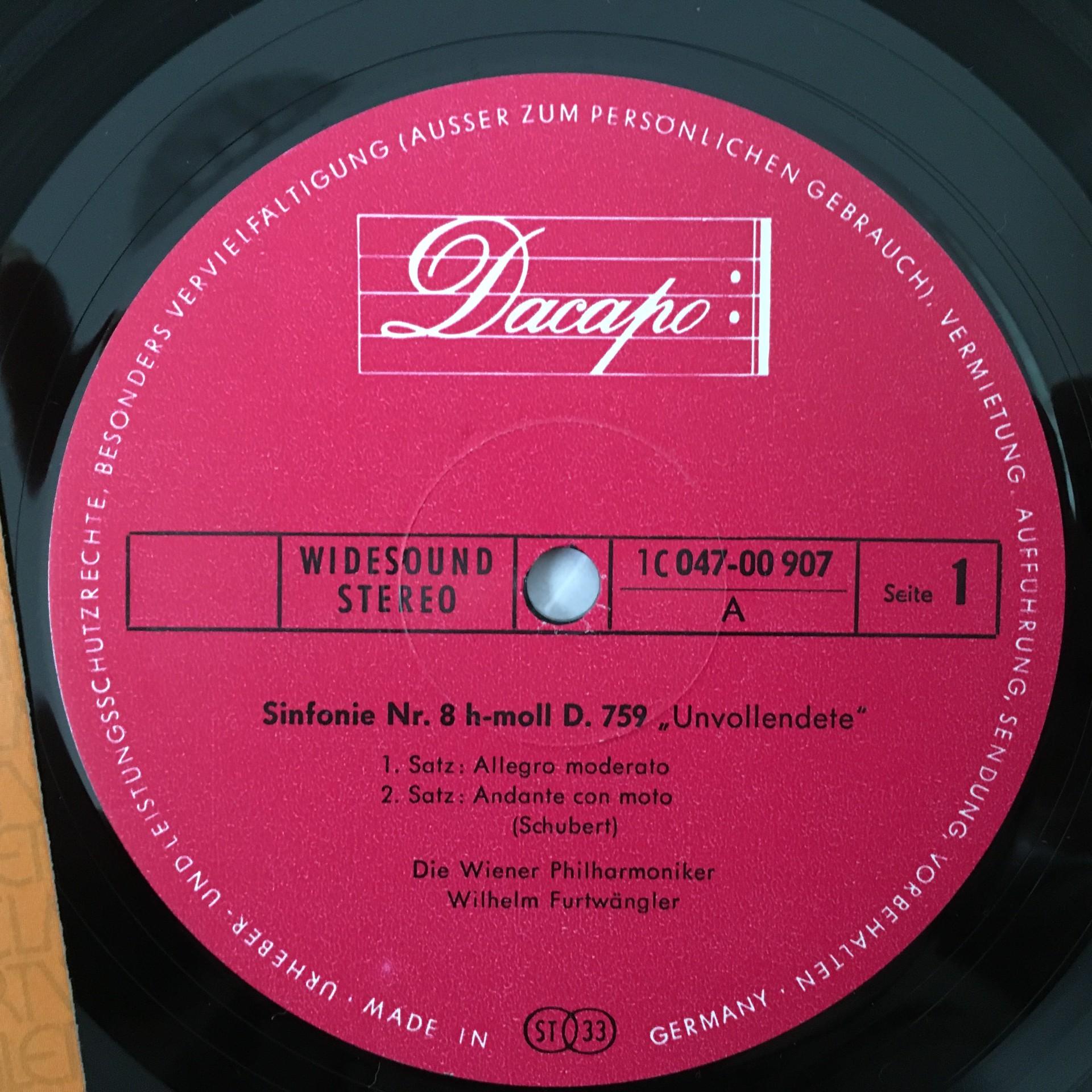 N133 Schubert Symphony No.8 Menuhin Furtwängler VPO Dacapo 1 C 047-00 907 Stereo