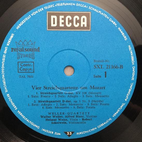 N139 Mozart Haydn Dittersdorf String Quartets Weller Quartet DECCA SXL 21 166-B