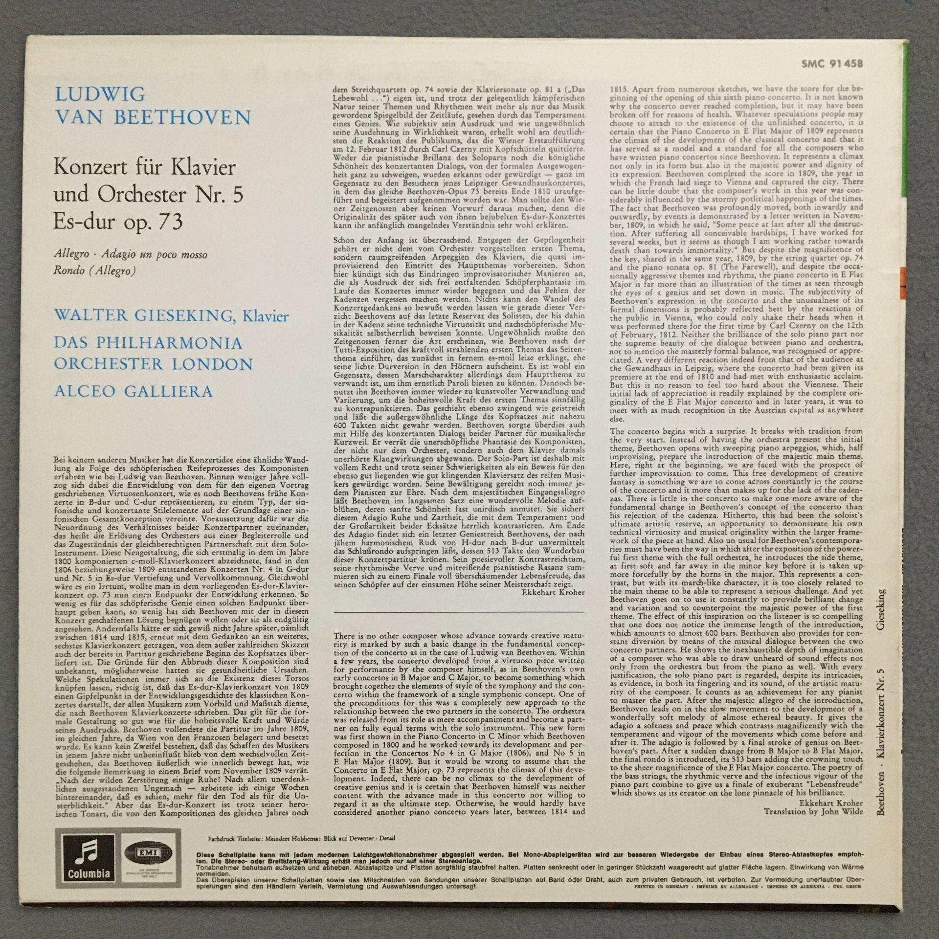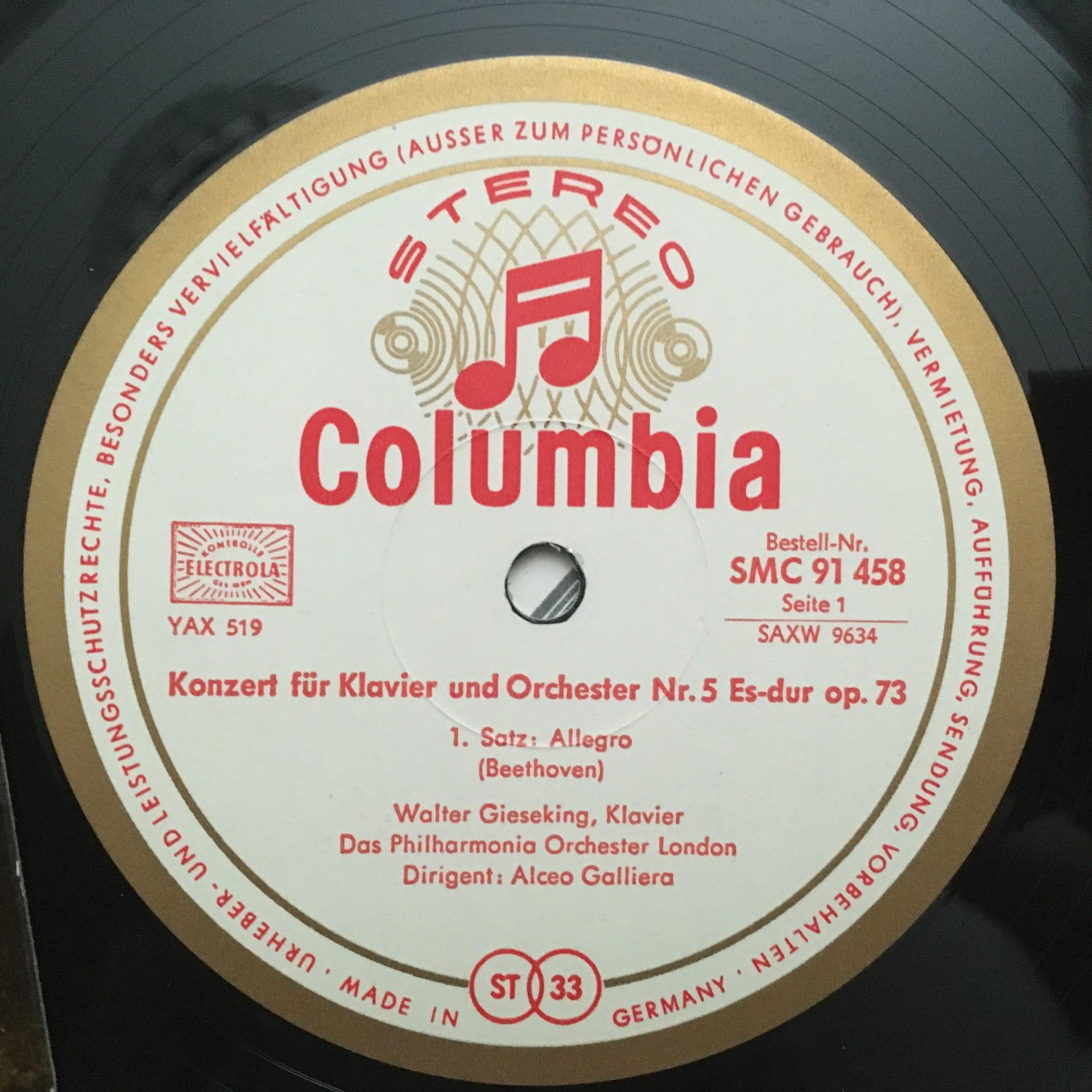 N140 Beethoven Piano Concerto Gieseking Galliera Columbia w/g SMC 91 458 Stereo