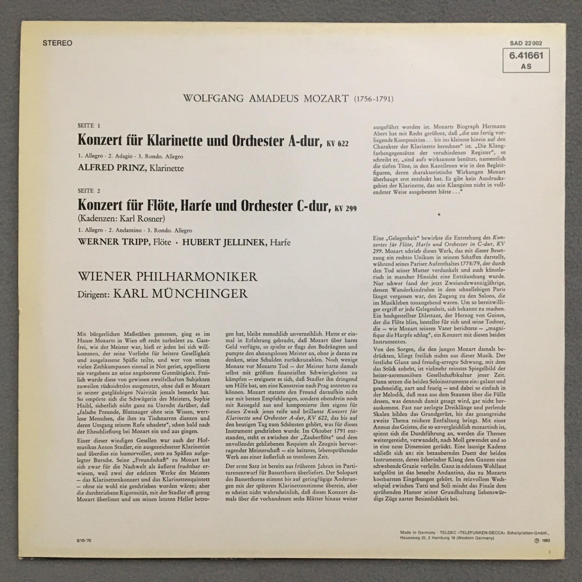 N142 Mozart Concertos Prinz Tripp Flute Munchinger VPO DECCA 6.41661 AS Stereo