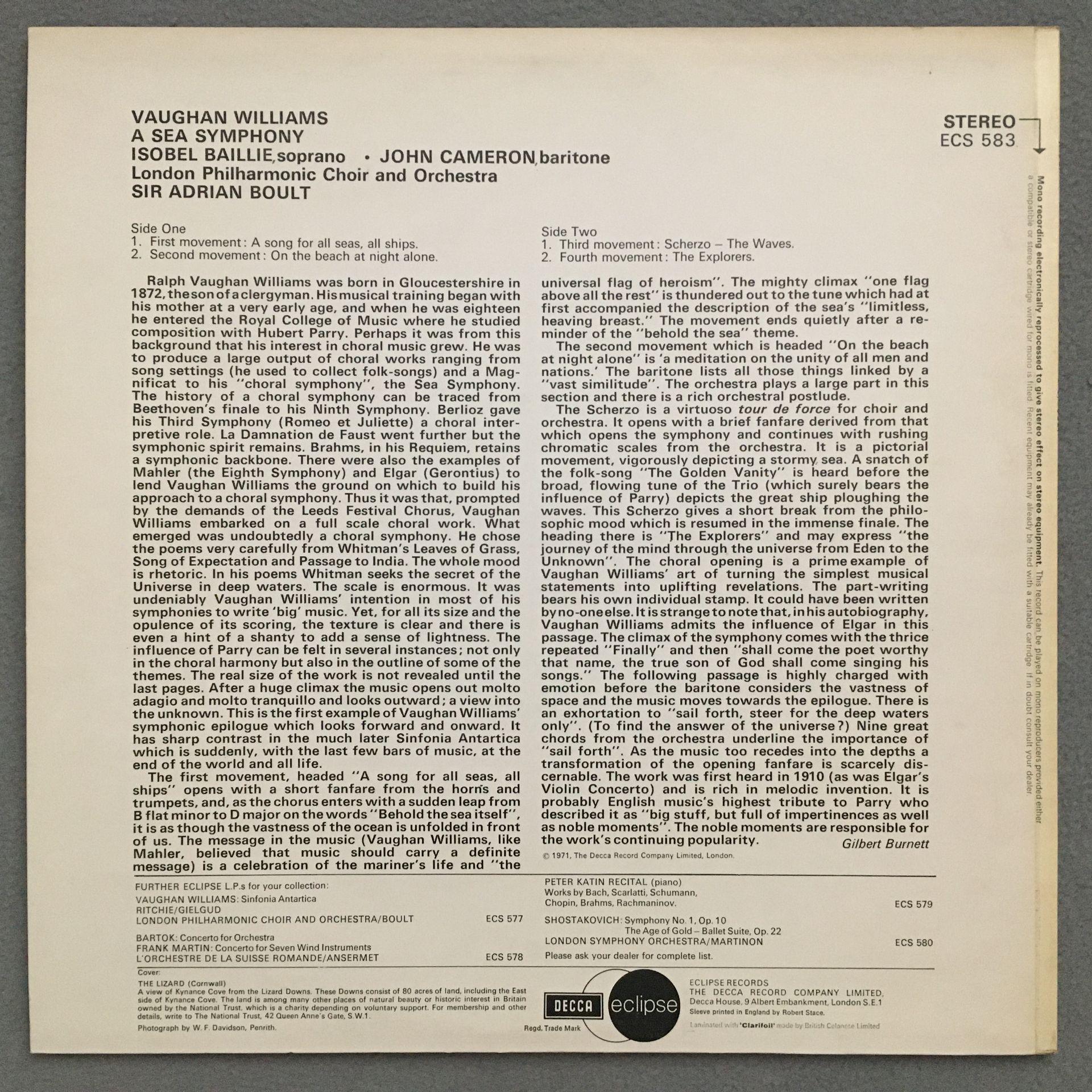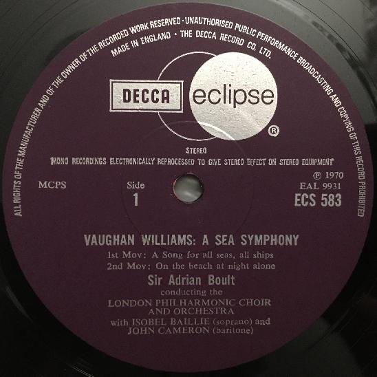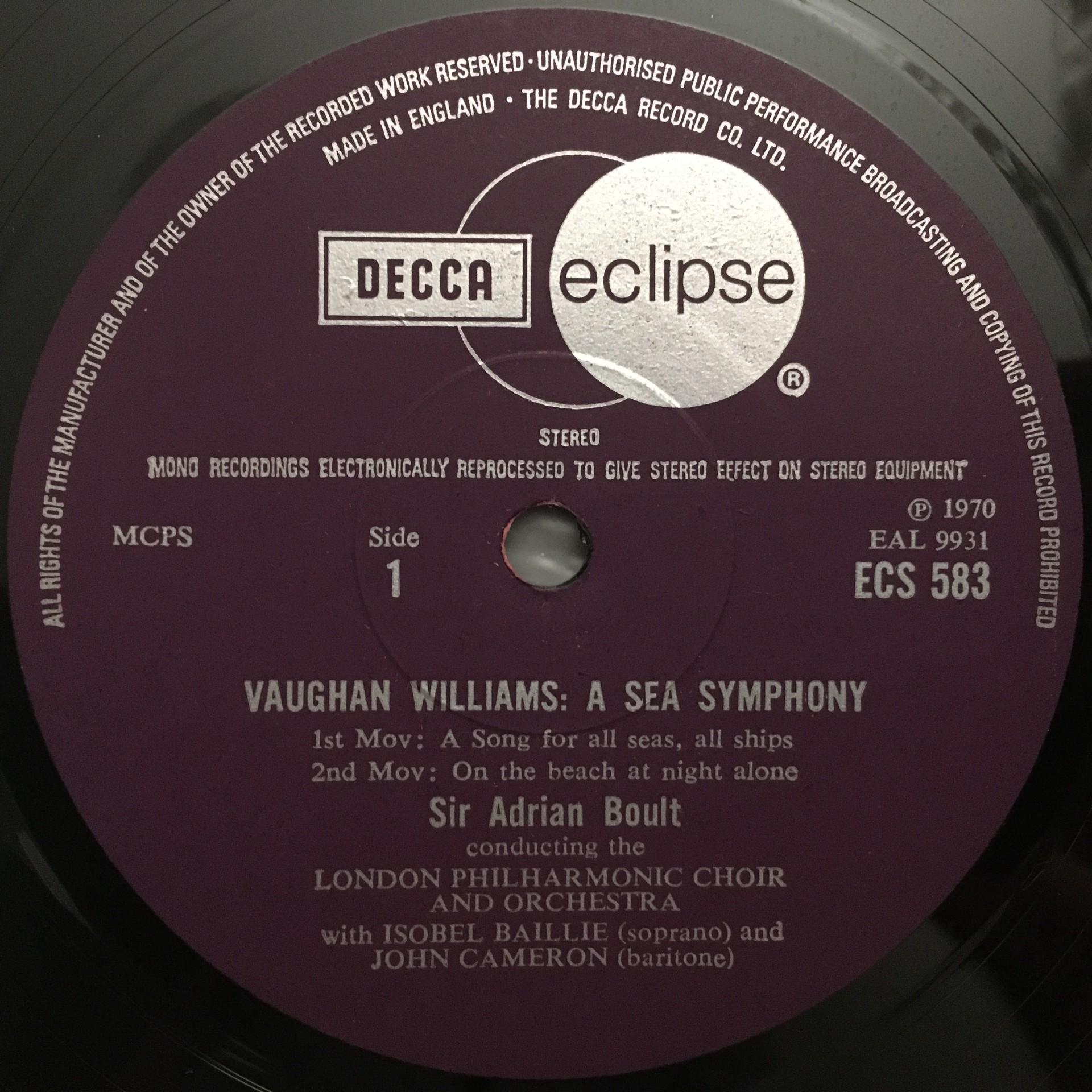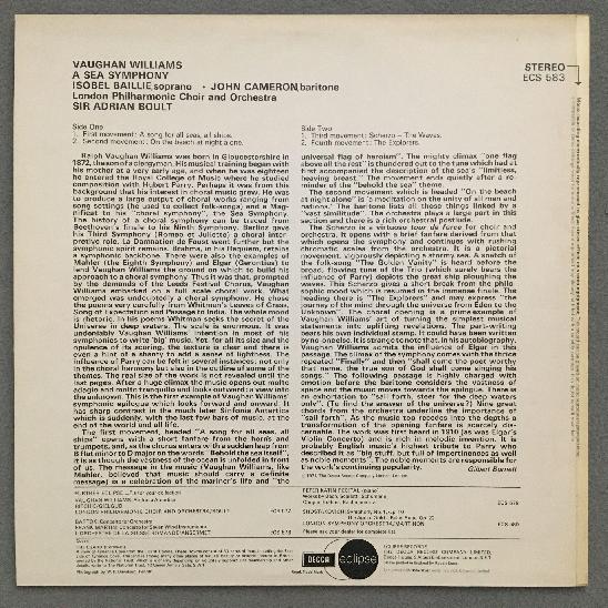 N143 Williams A Sea Symphony Baillie Cameron Boult DECCA ECS 583 Stereo