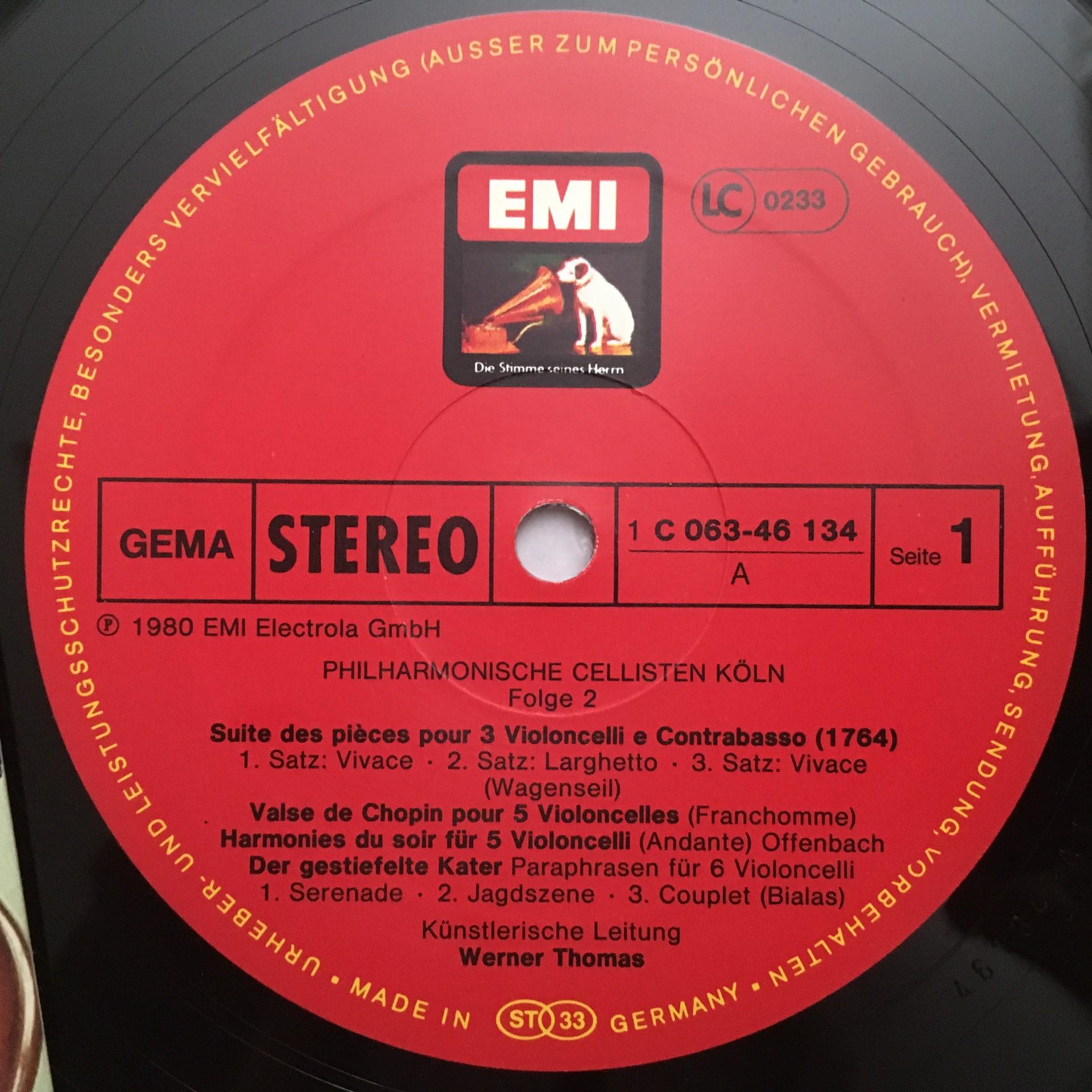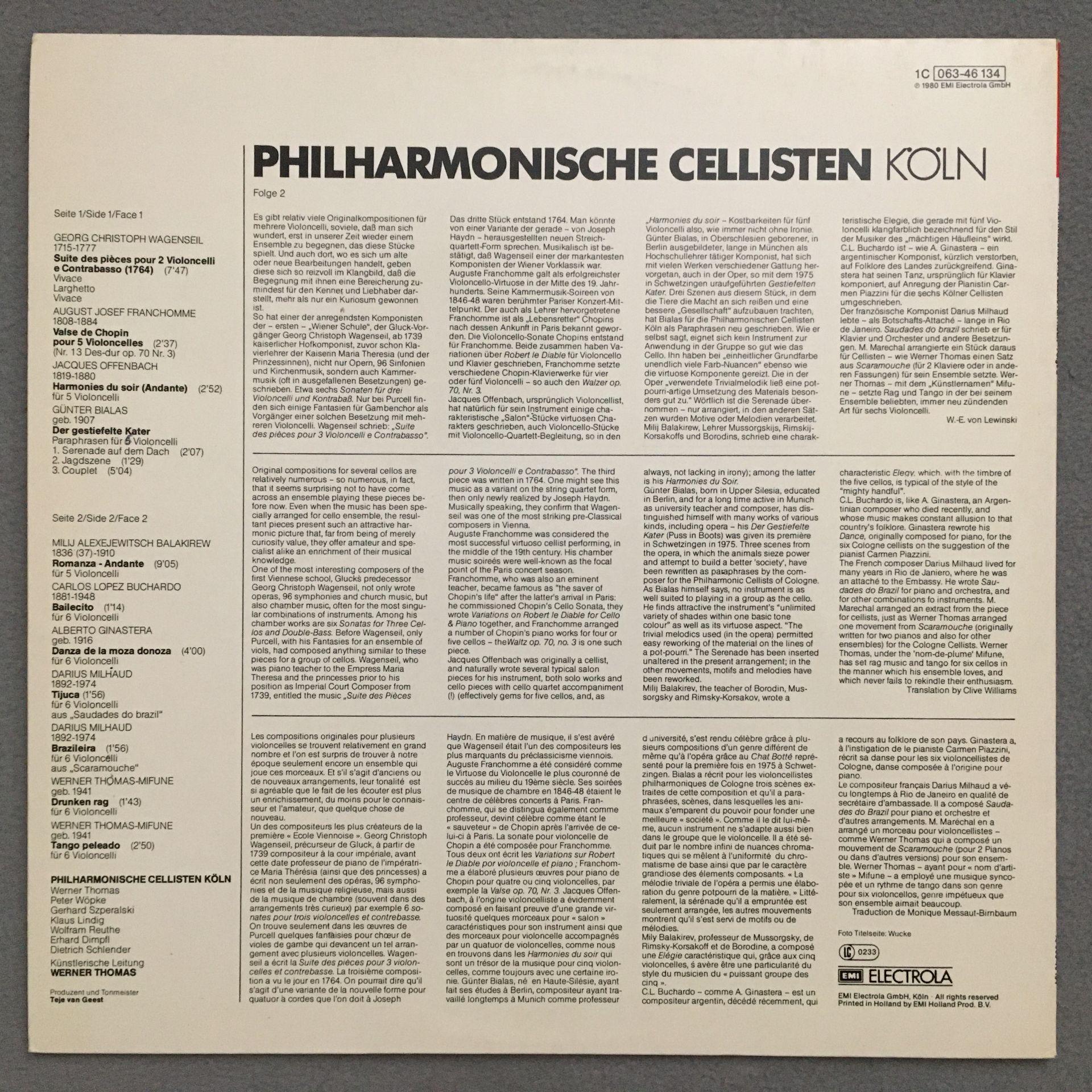 N144 Philharmonic Cellists Köln Wagenseil Milhaud Vol.2 EMI 1C 063-46 134 Stereo