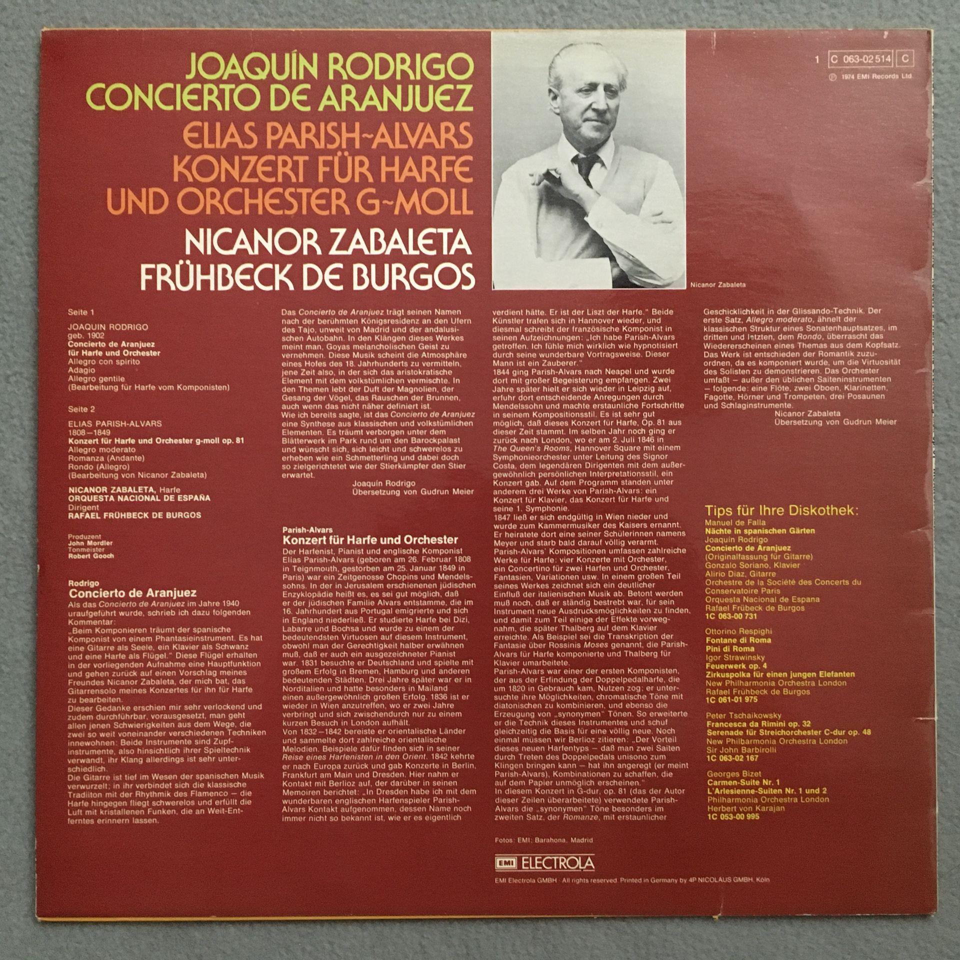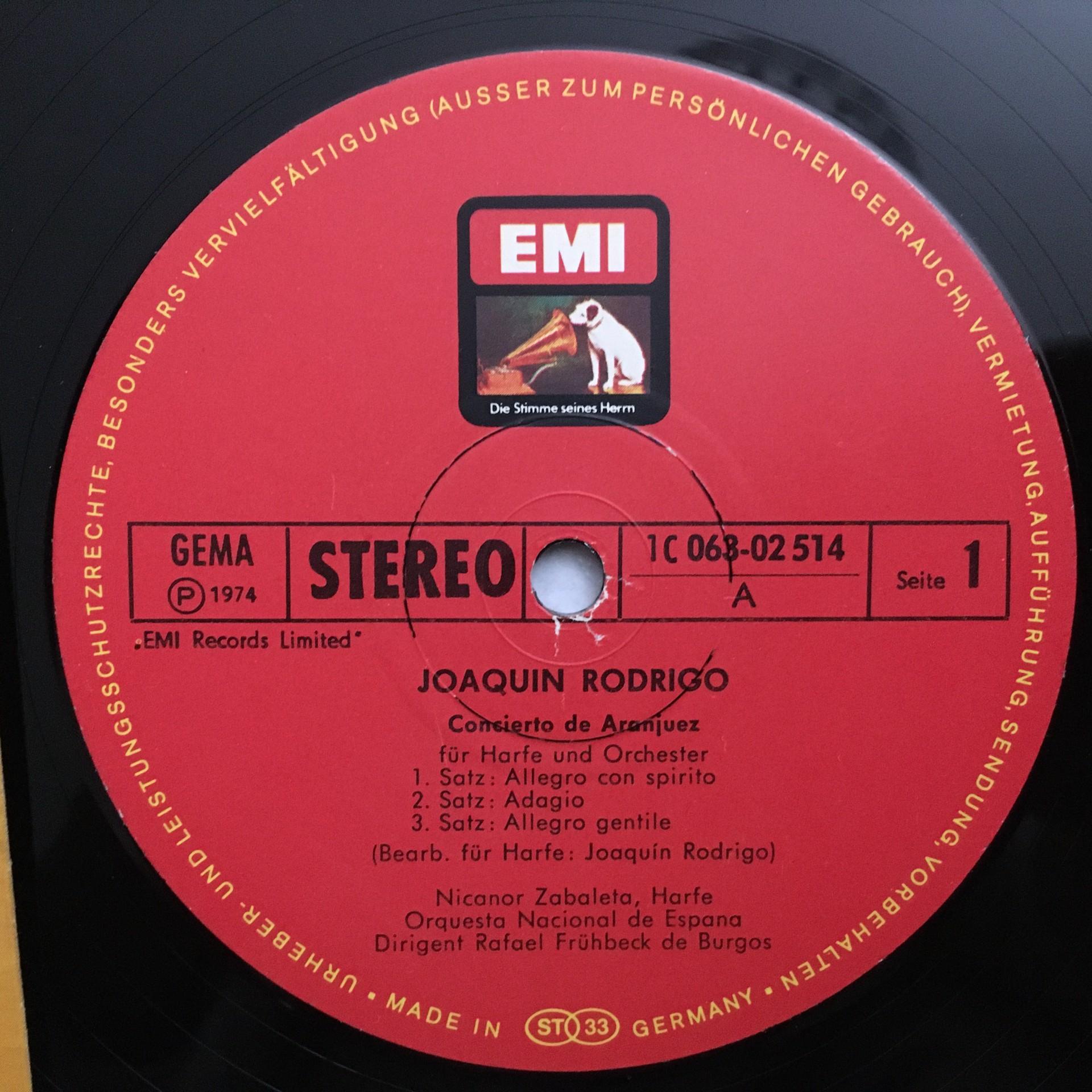 U302 Rodrigo Concerto de Aranjuez Diaz de Burgos EMI 1 C 063-02 514 Stereo