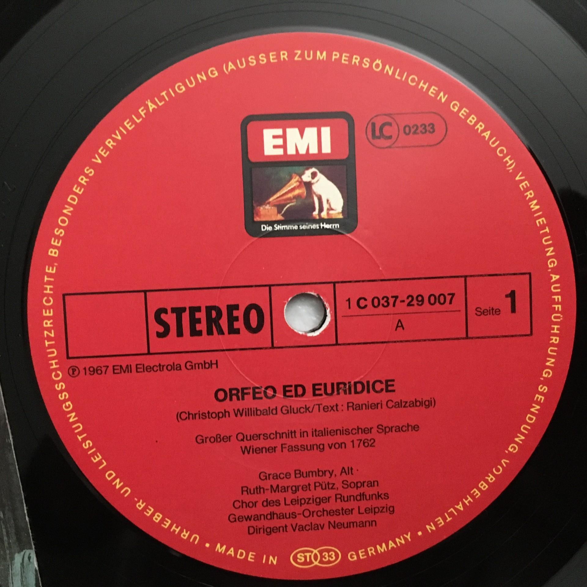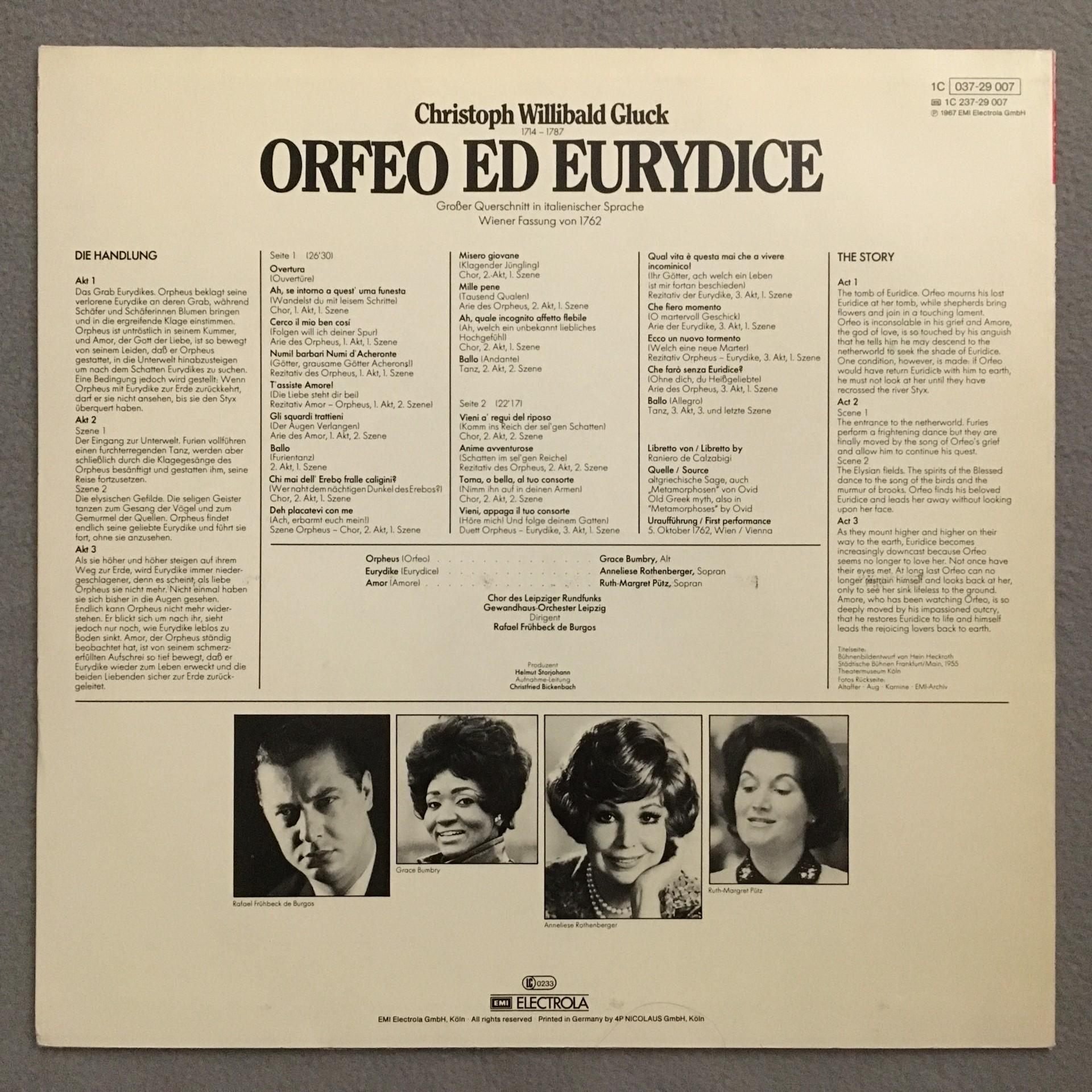 U306 Gluck Orfeo & Eurydice Rothenberger Neumann EMI 1C 037 29 007 Stereo