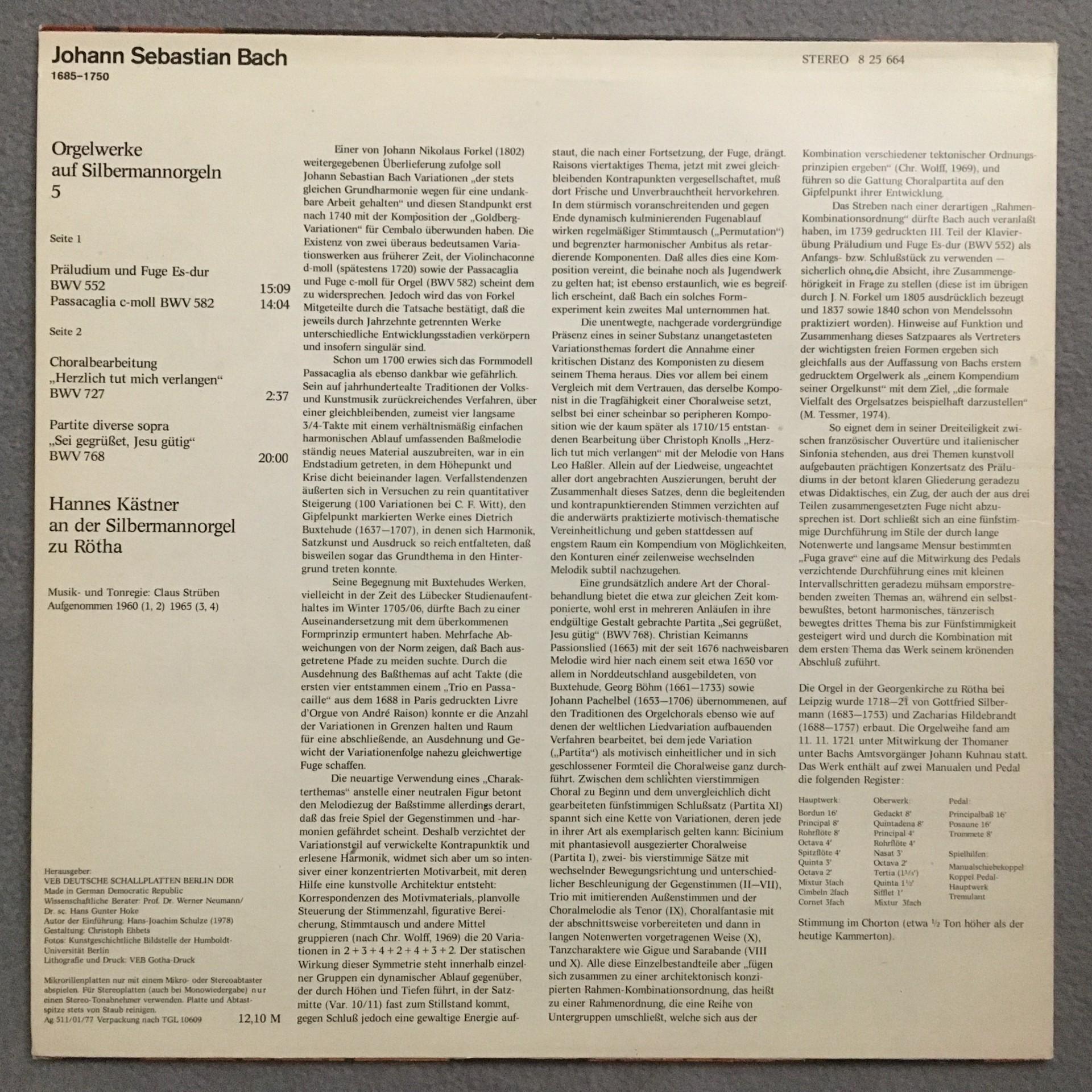 U307 Bach Organ Works 5 Kästner Eterna 8 25 664 Stereo