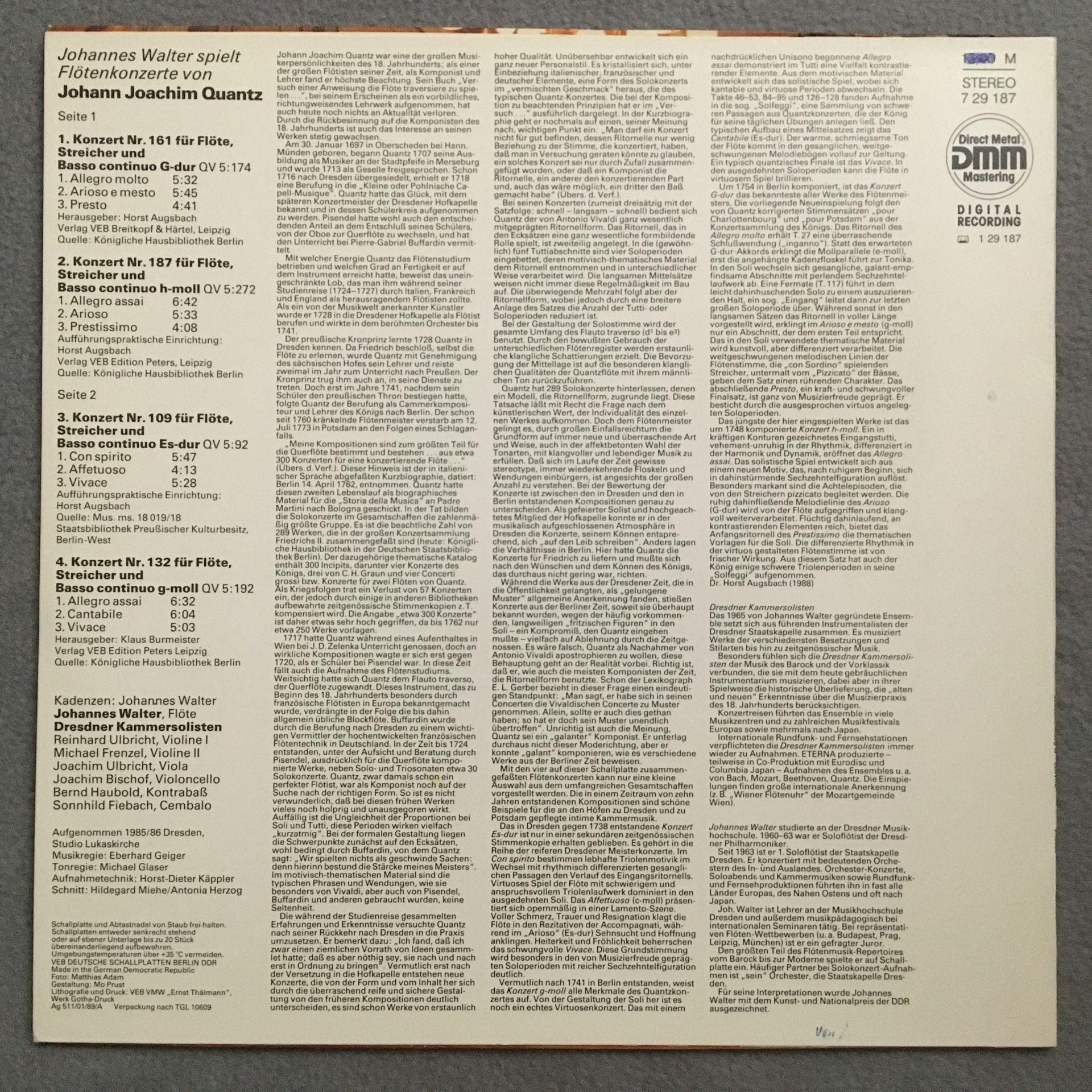 U308 Quantz Flute Concertos Walter Ulbricht Eterna 7 29 187 Digital Stereo