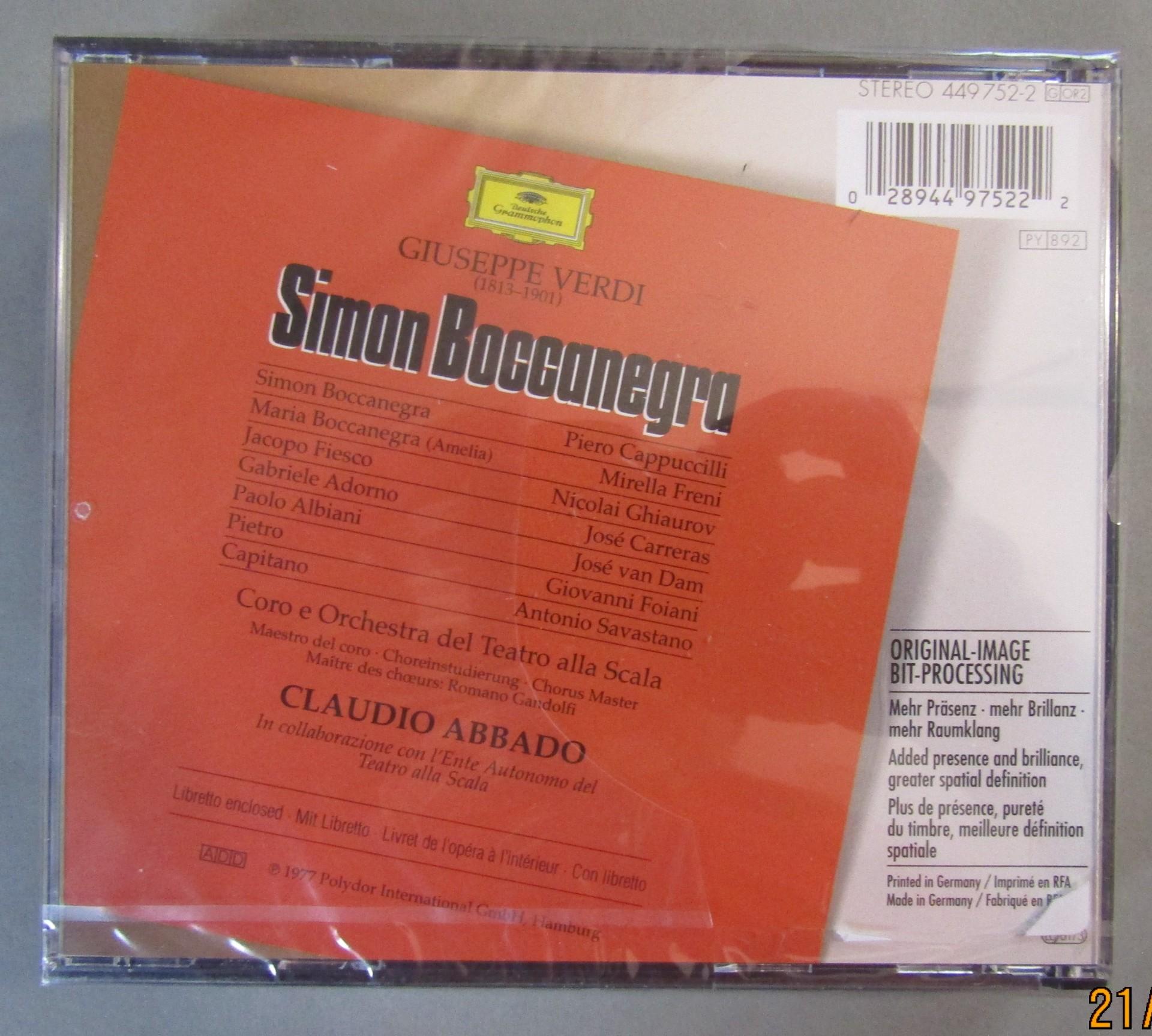 CS013 Verdi Simon Boccanegra Cappuccilli Freni Abbado DGG SEALED