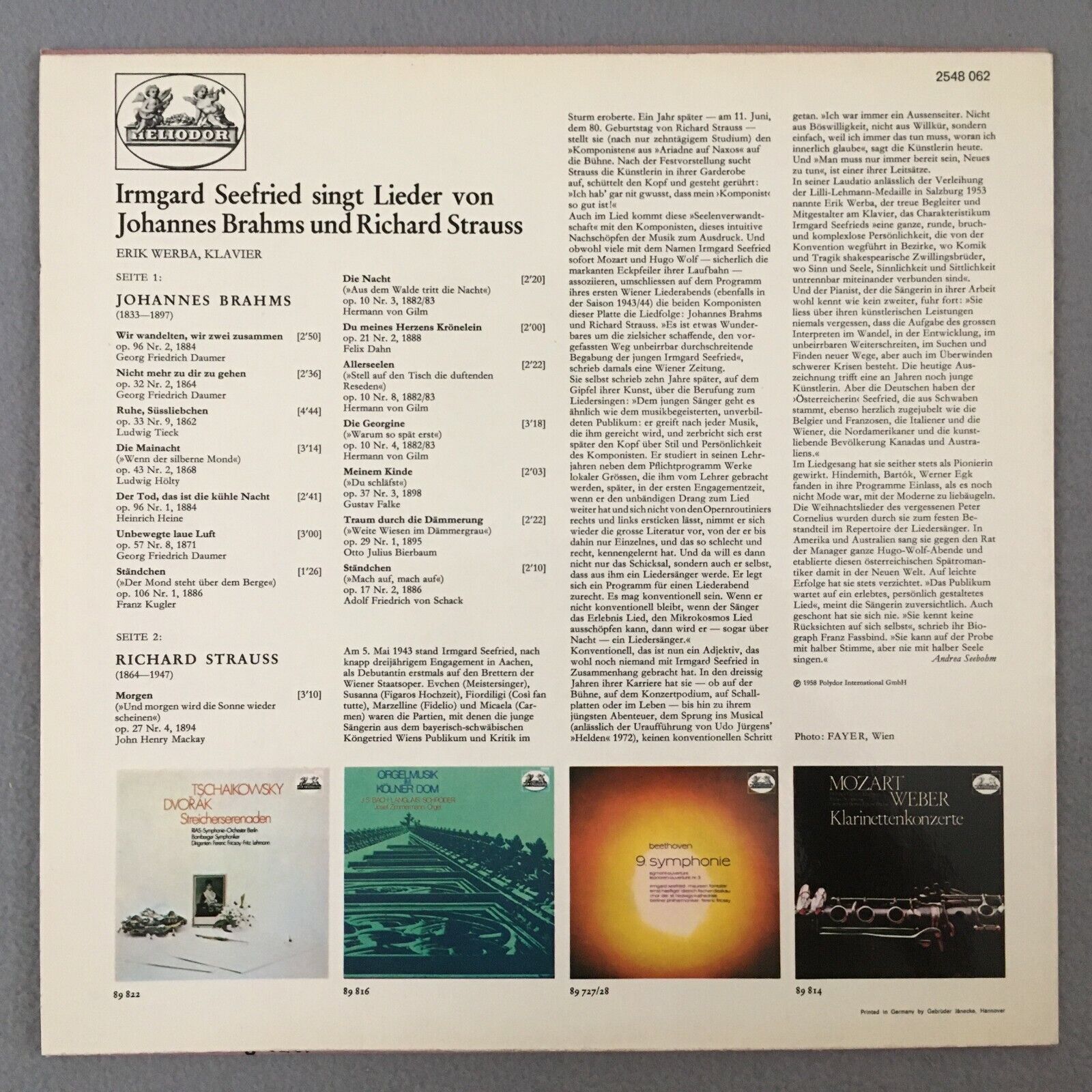 Y497 Seefried sings Songs from Strauss & Brahms Werba Heliodor 2548 062 Stereo