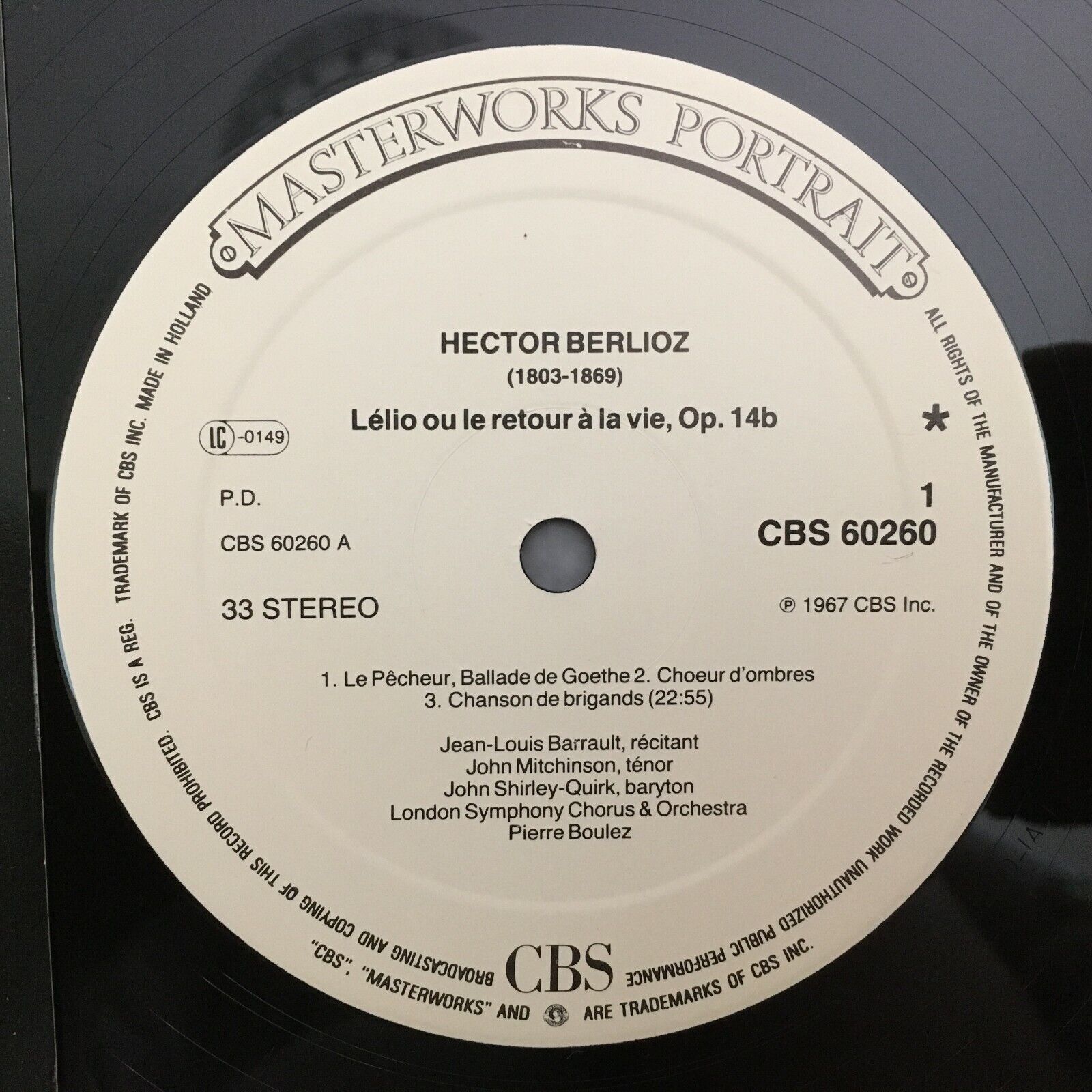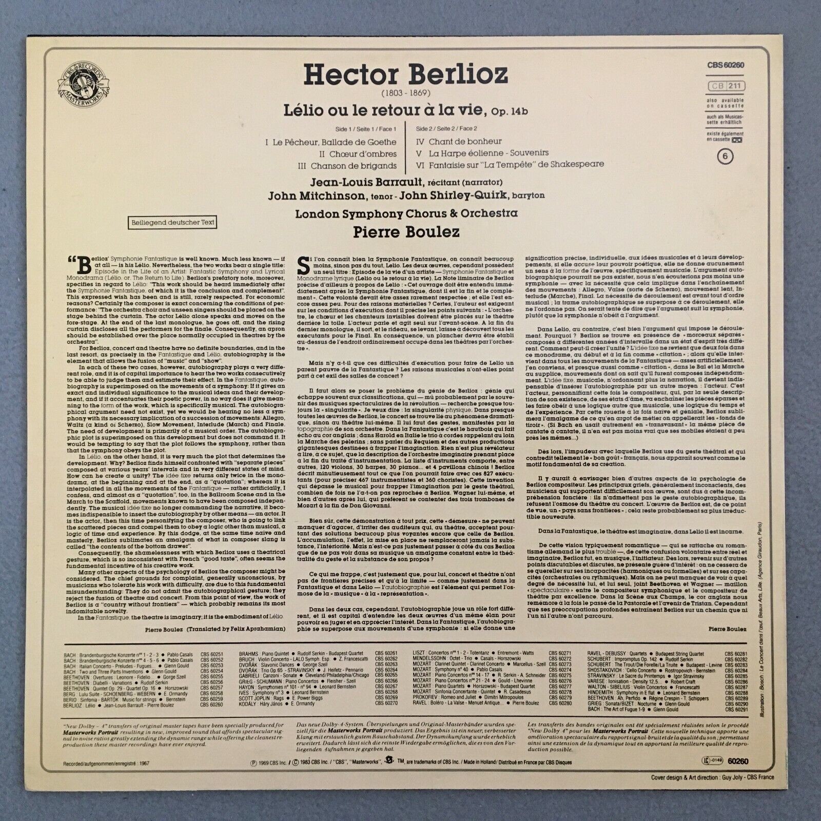 Y526 Berlioz Lelio Barrault Mitchinson Shirley-Quirk Boulez CBS 60260 Stereo