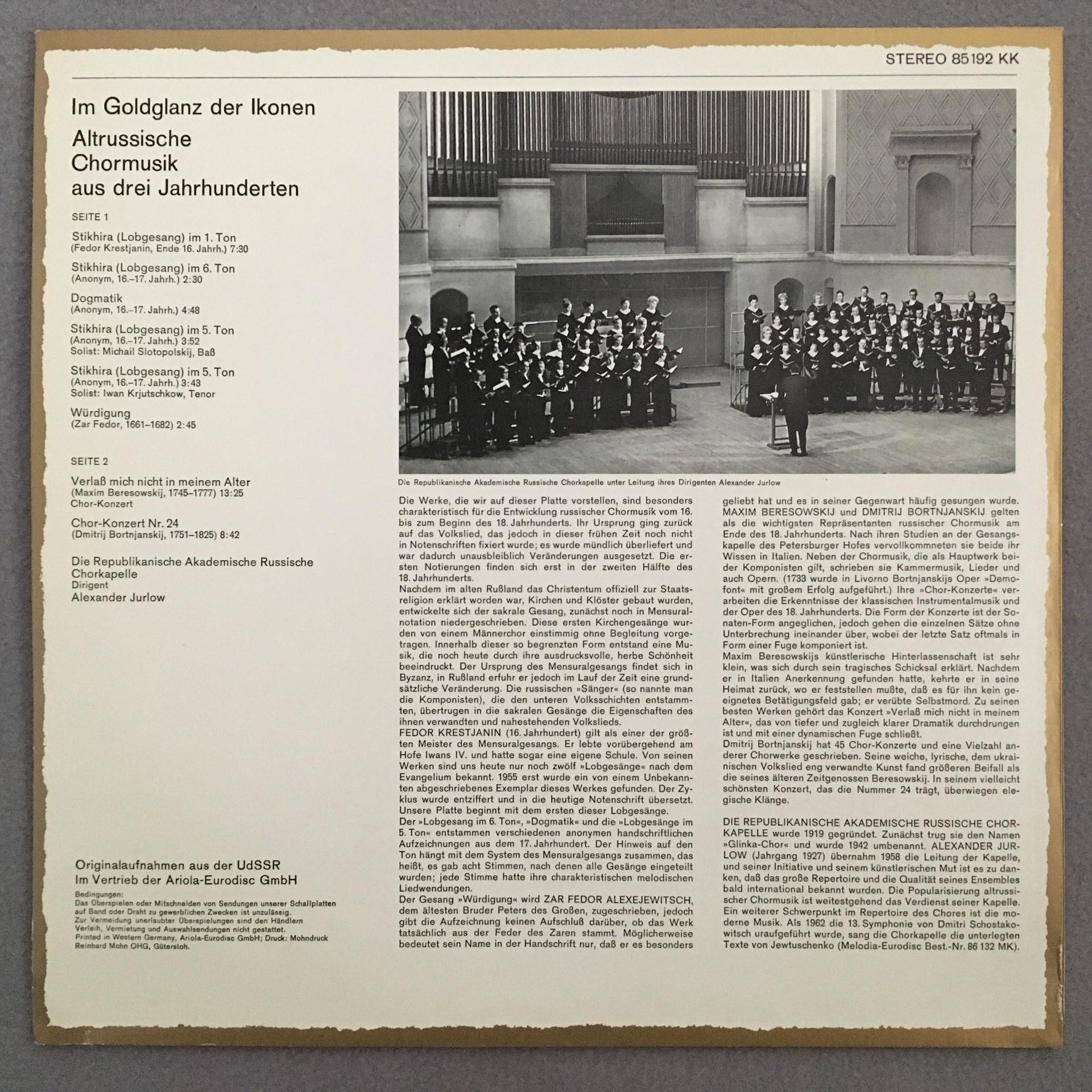 U317 Russian Choral Music 3 Centuries Yurlov Eurodisc 85 192 KK Stereo