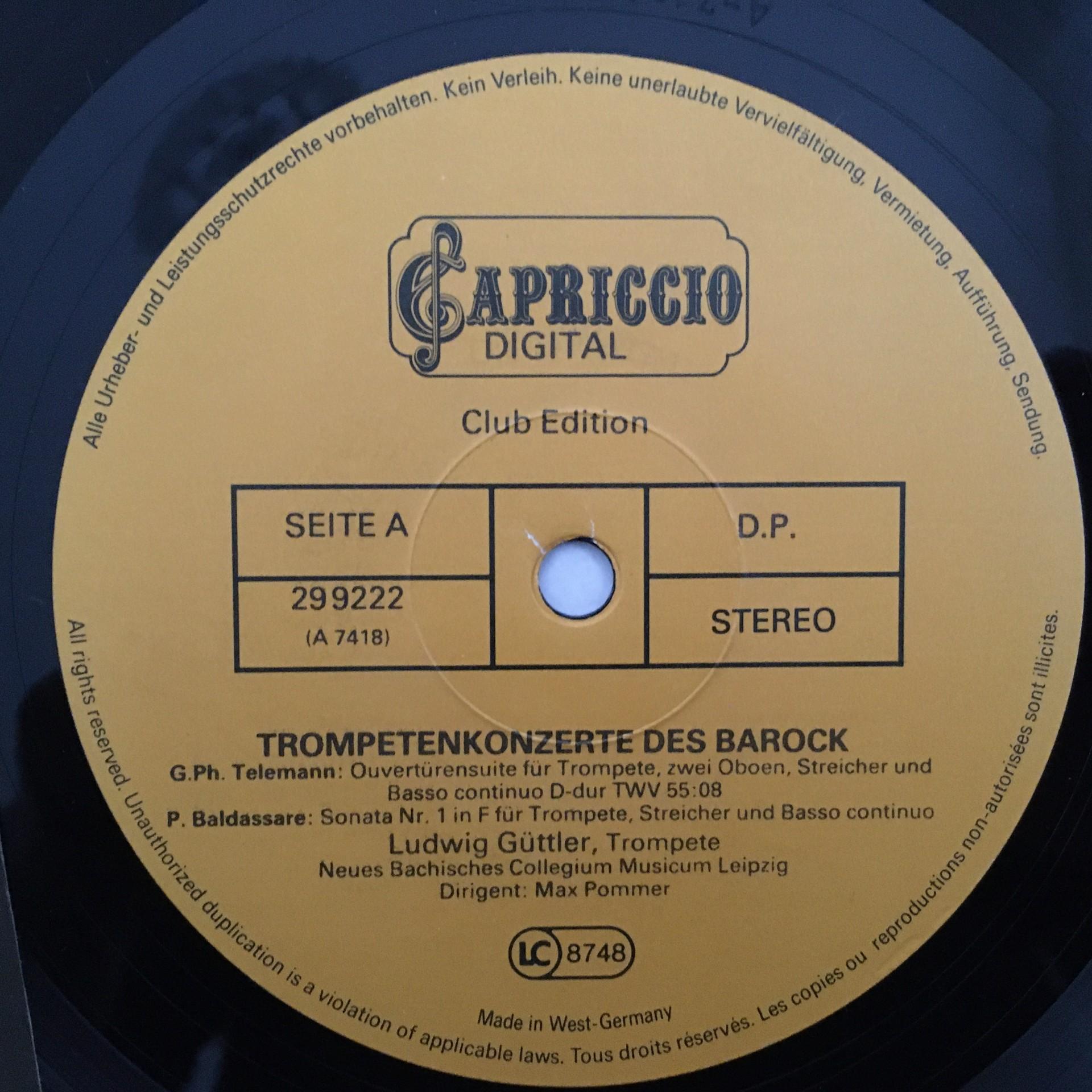 U318 Baroque Trumpet Concertos Güttler Pommer Capriccio 29 922 2 Digital Stereo