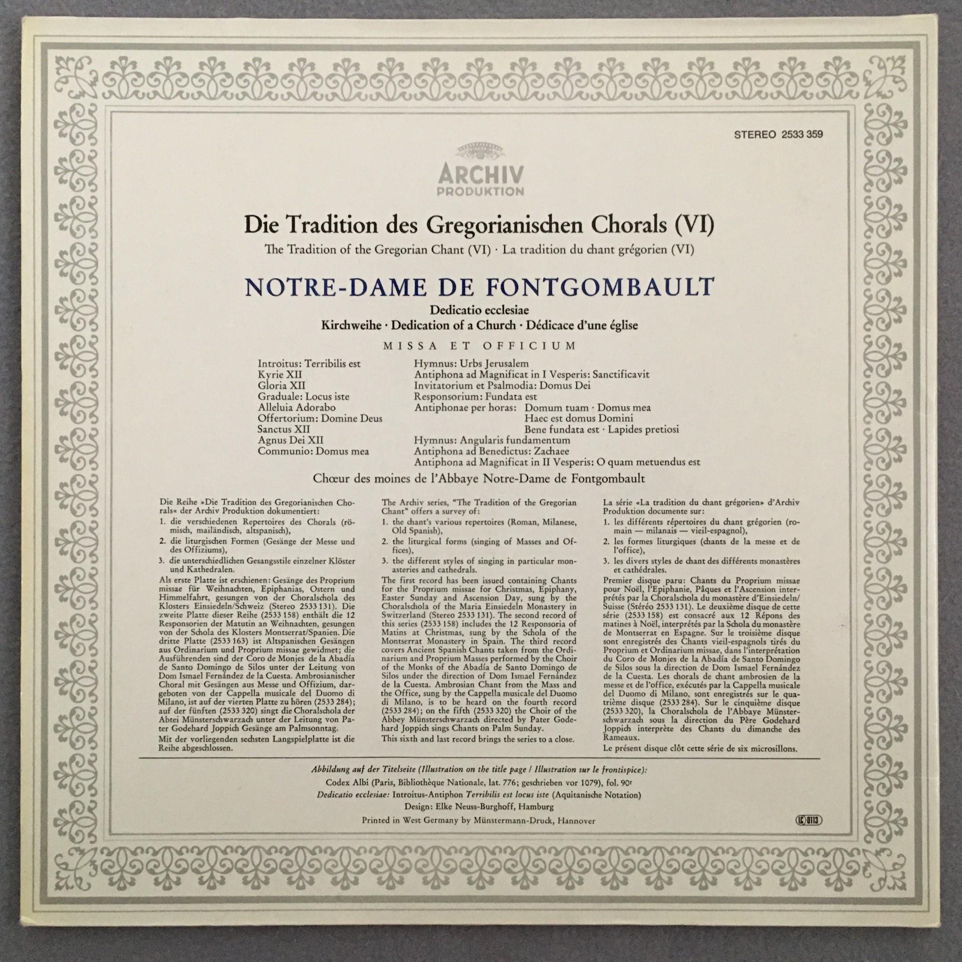 U324 Gregorian Chant Notre Dame De Fontgombault DGG Archiv 2533 359 Stereo