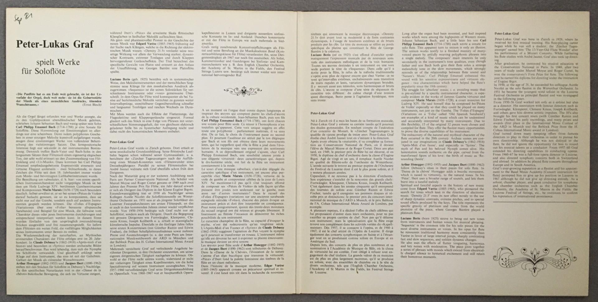 U332 Graf plays Works for Solo Flute Debussy Honegger Varese Claves P-235 Stereo