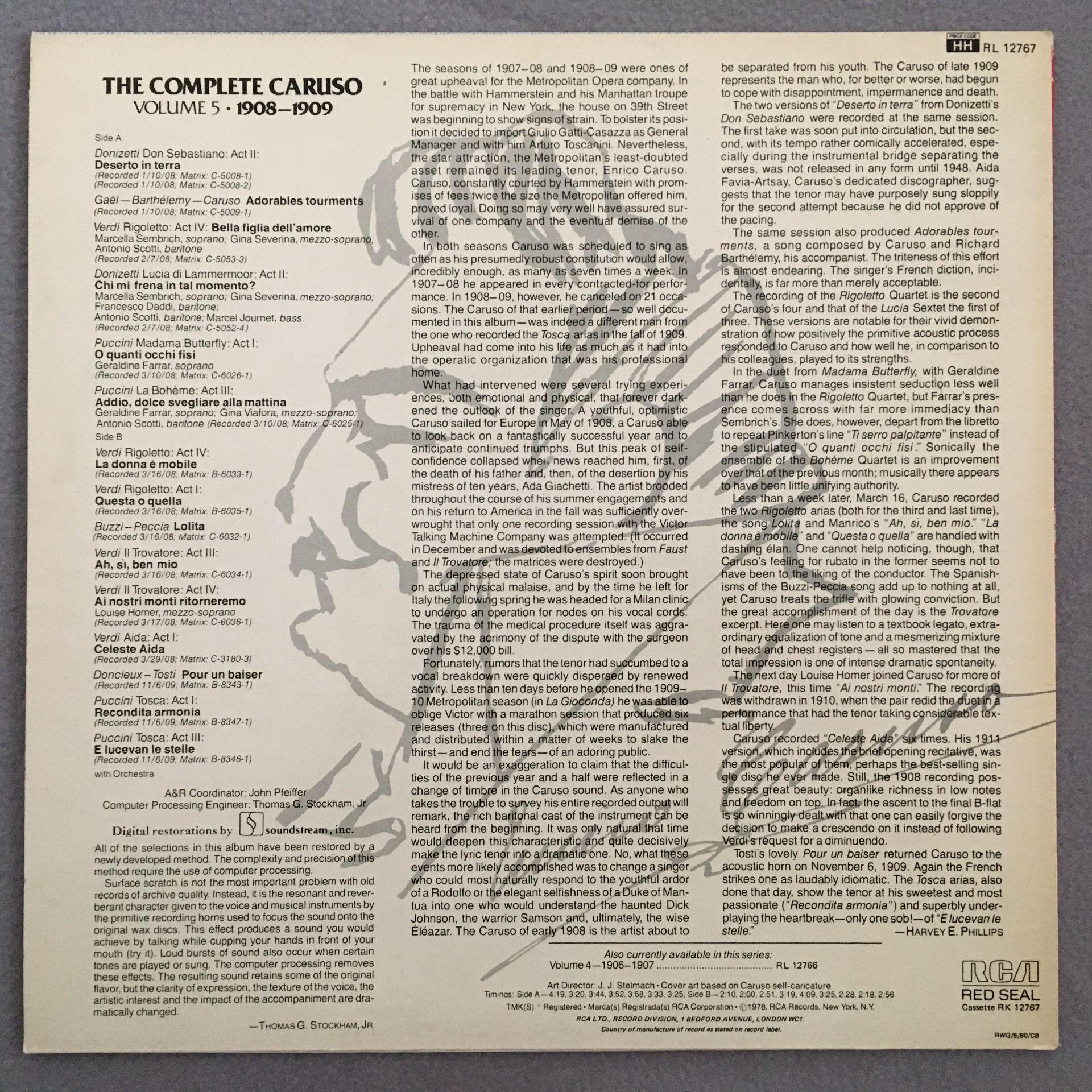 U333 The Complete Caruso Vol. 5 1908-1909 RCA RL 12767 Stereo
