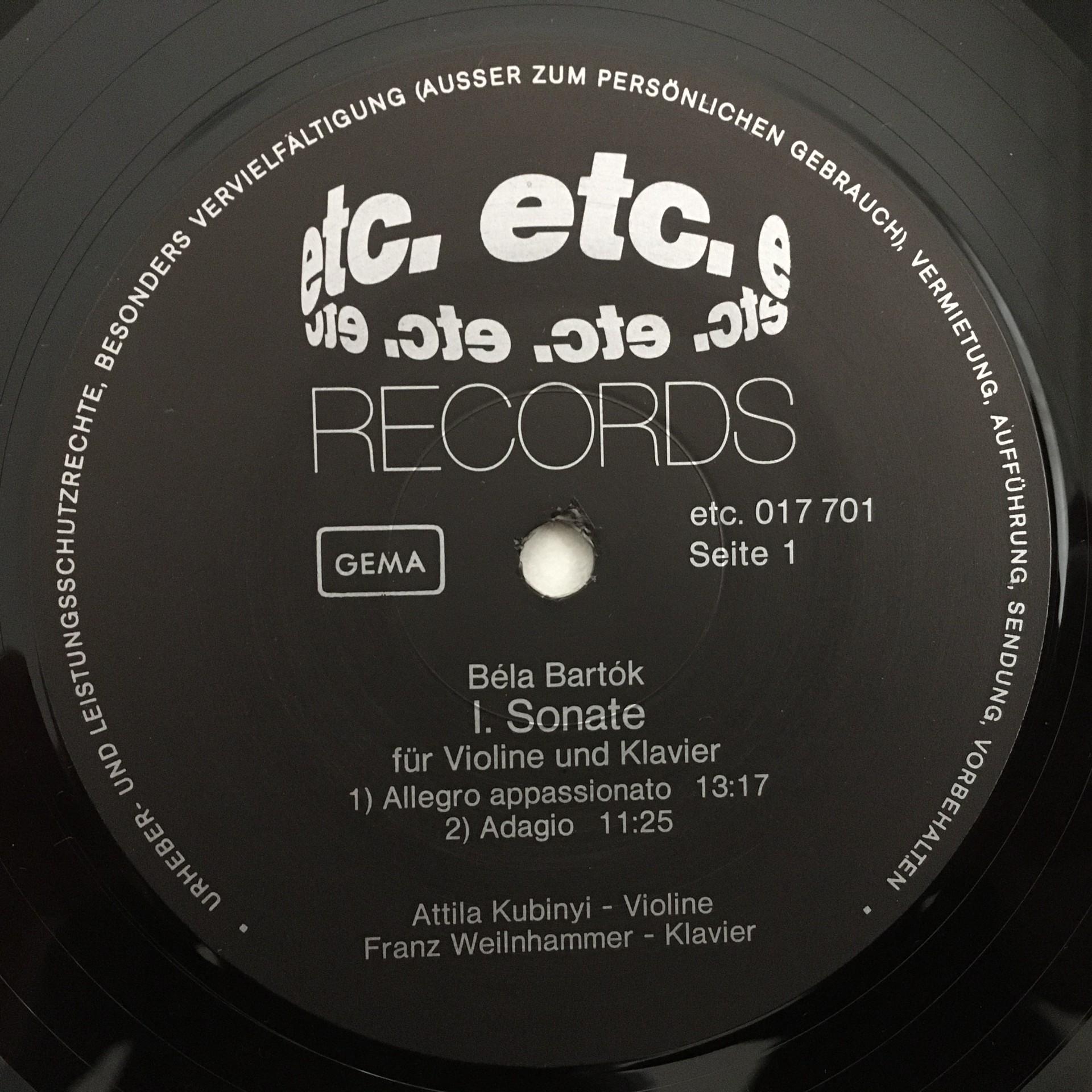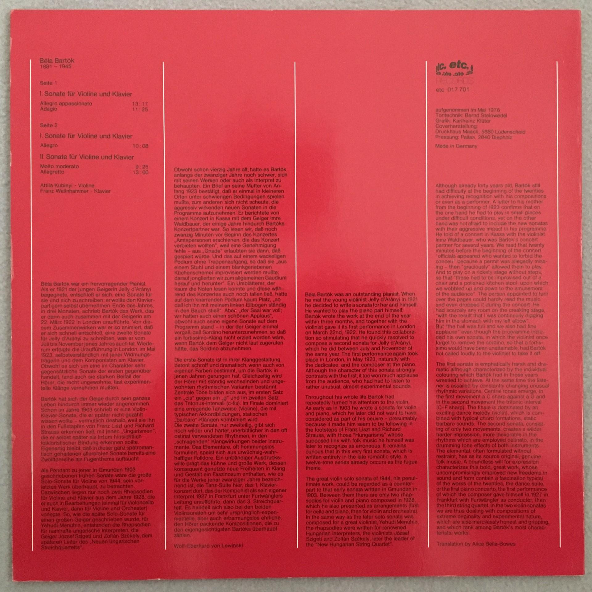 U336 Bartok Violin & Piano Sonatas Kubinyi Weilnhammer ETC 017 701