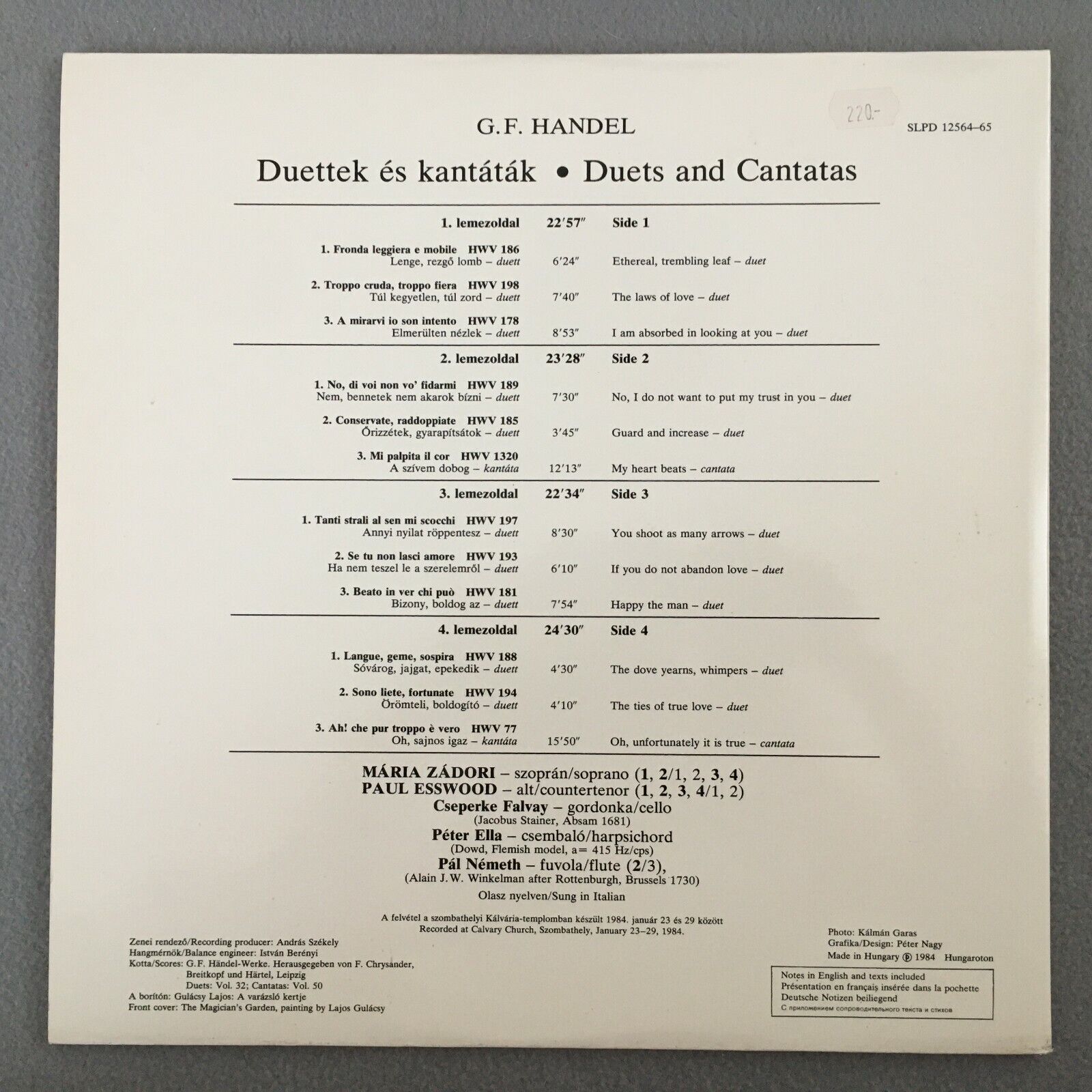 Y642 Handel Duets & Cantatas Zadori Esswood 2LP Hungaroton SLPD 12564-65 Stereo