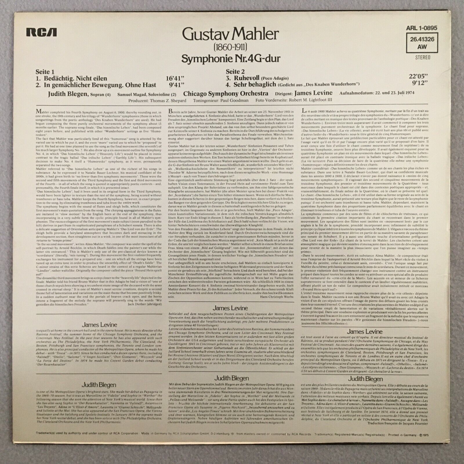 Y651 Mahler Symphony No.4 Blegen Levine RCA ARL 1-0895 Stereo