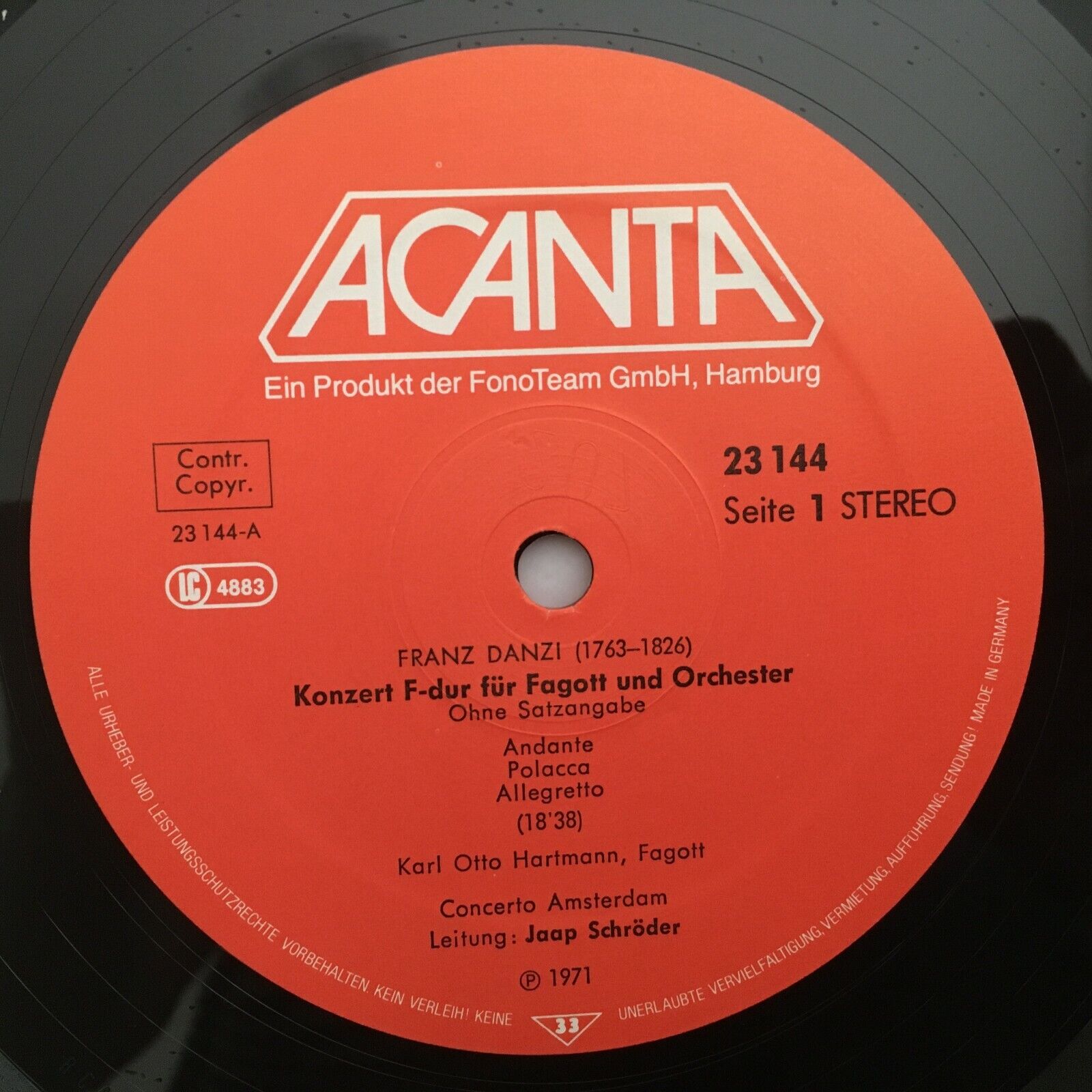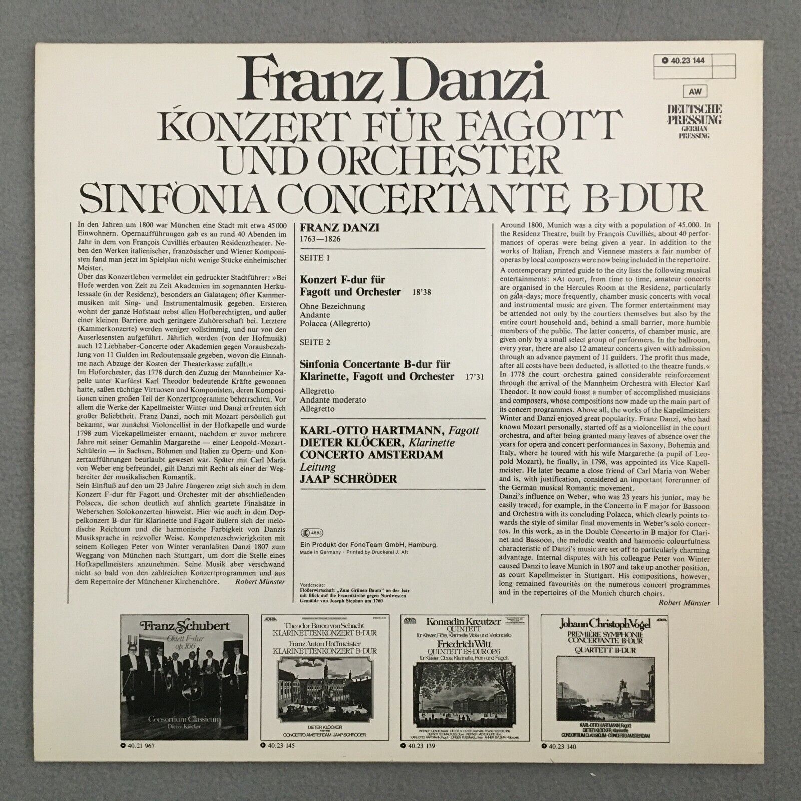 Y673 Danzi Fagott Concerto Hartmann Klöcker Schröder Acanta 40.23 144 Stereo